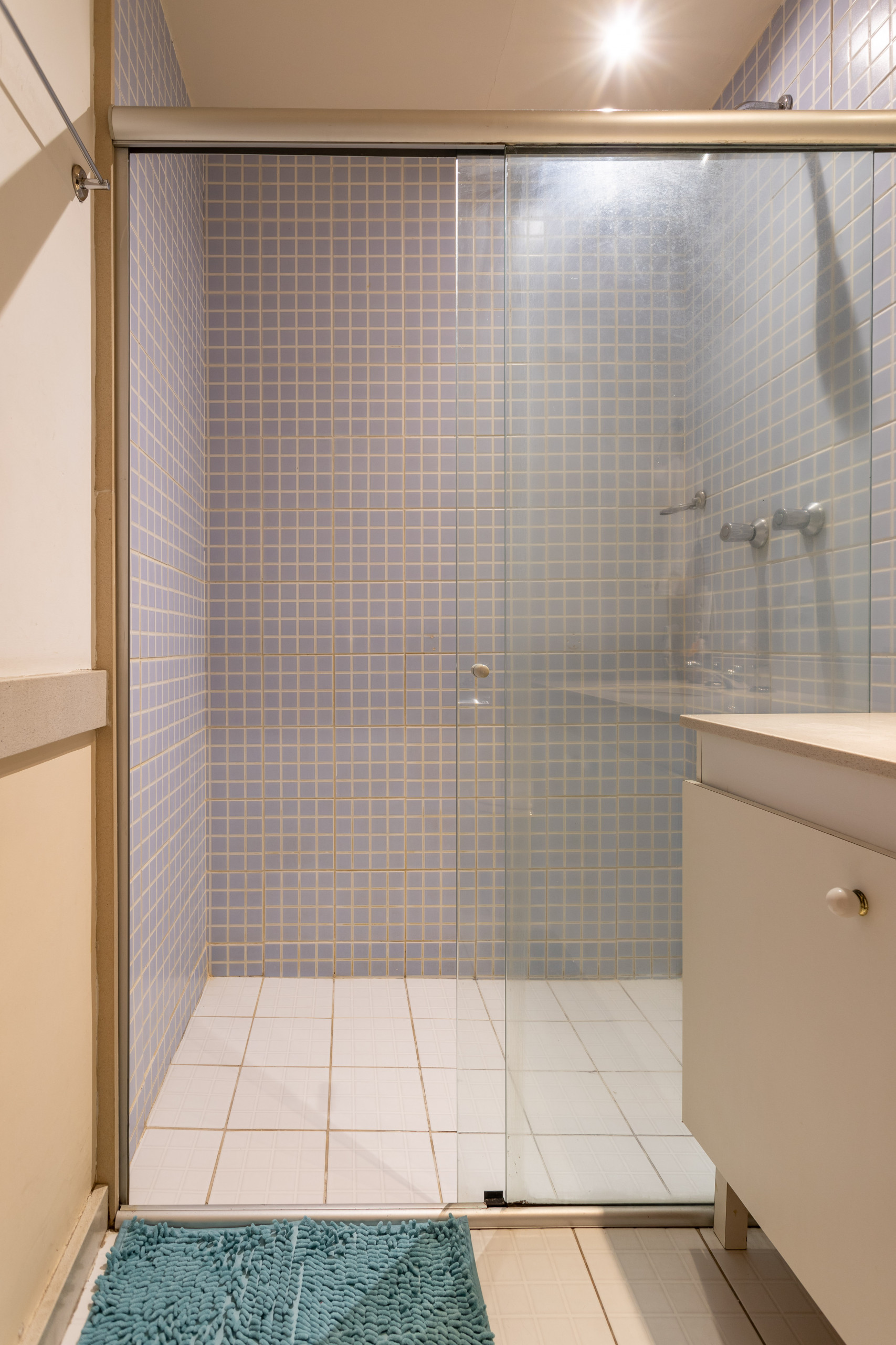 Nenhum degrau entre o chuveiro e o chão do banheiro