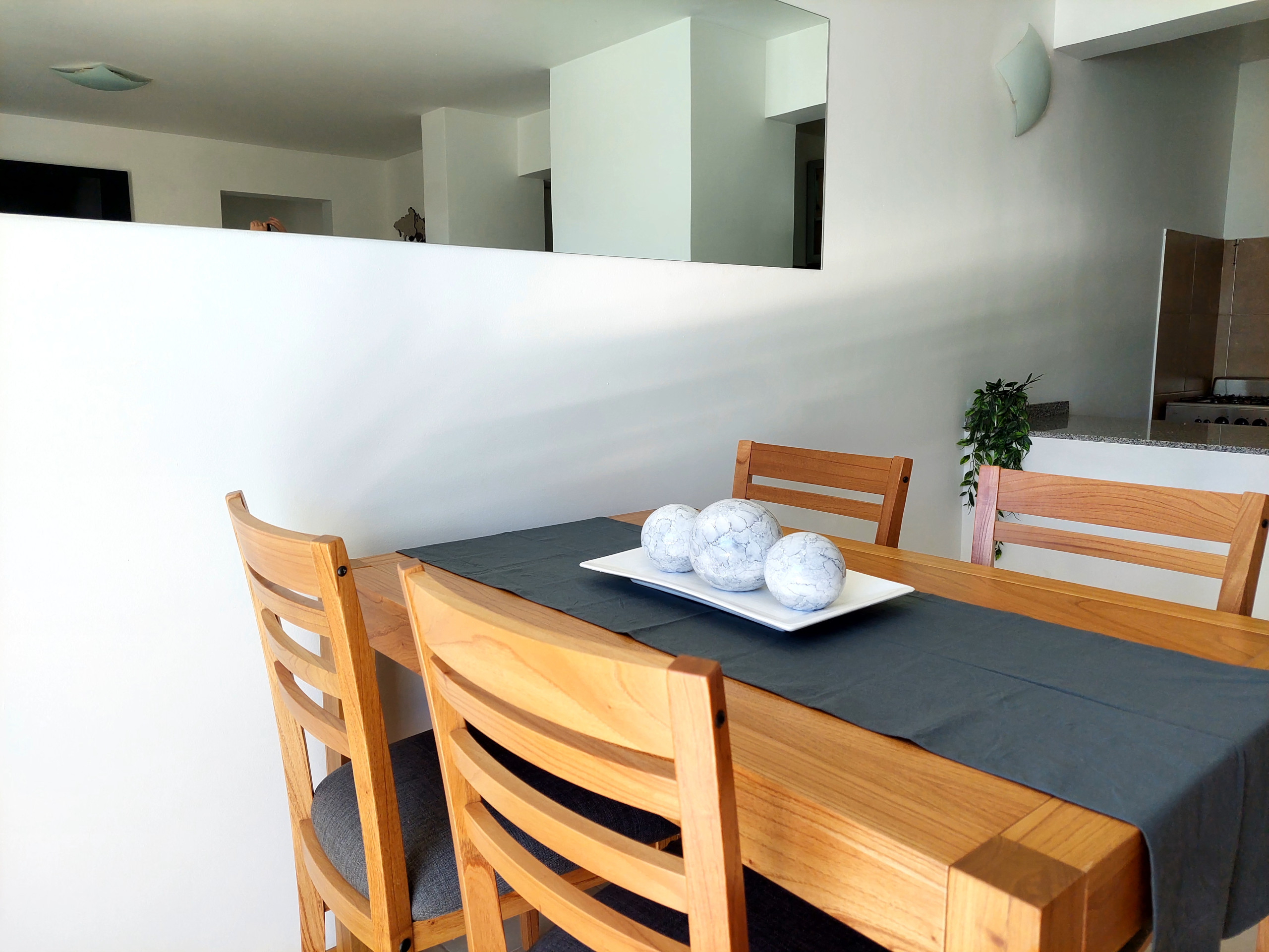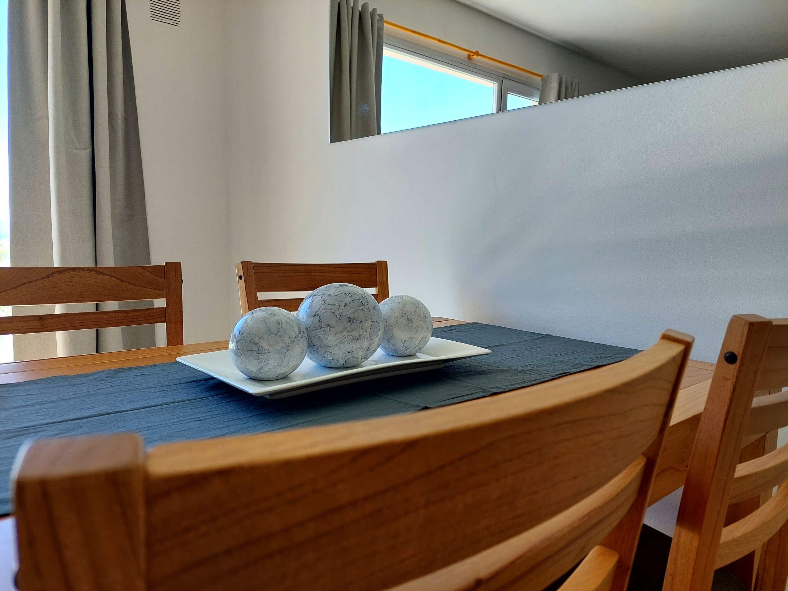 Im Hauptschlafzimmer finden Sie ein bequemes Doppelbett, das in zwei Einzelbetten umgewandelt werden kann. Das Badezimmer ist mit einer Badewanne und einem Haartrockner ausgestattet. Im Wohnzimmer gibt es einen Tisch mit vier Stühlen, ideal für Mahlzeiten mit Familie oder Freunden. Es gibt auch ein Tagesbett mit einem ausziehbaren Bett darunter, das für Kinder empfohlen wird, da wir keine höhere Matratze zur Verfügung stellen können.