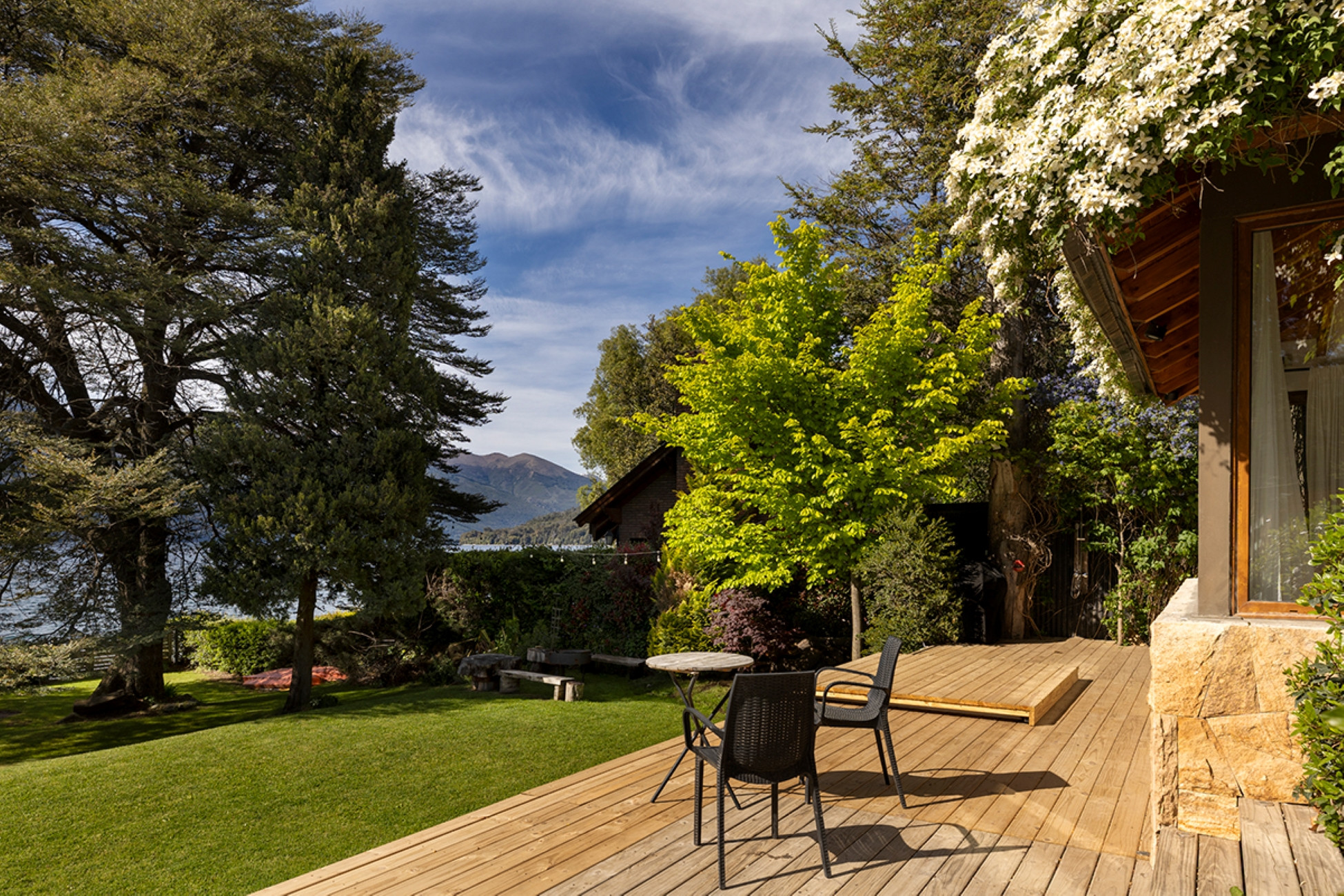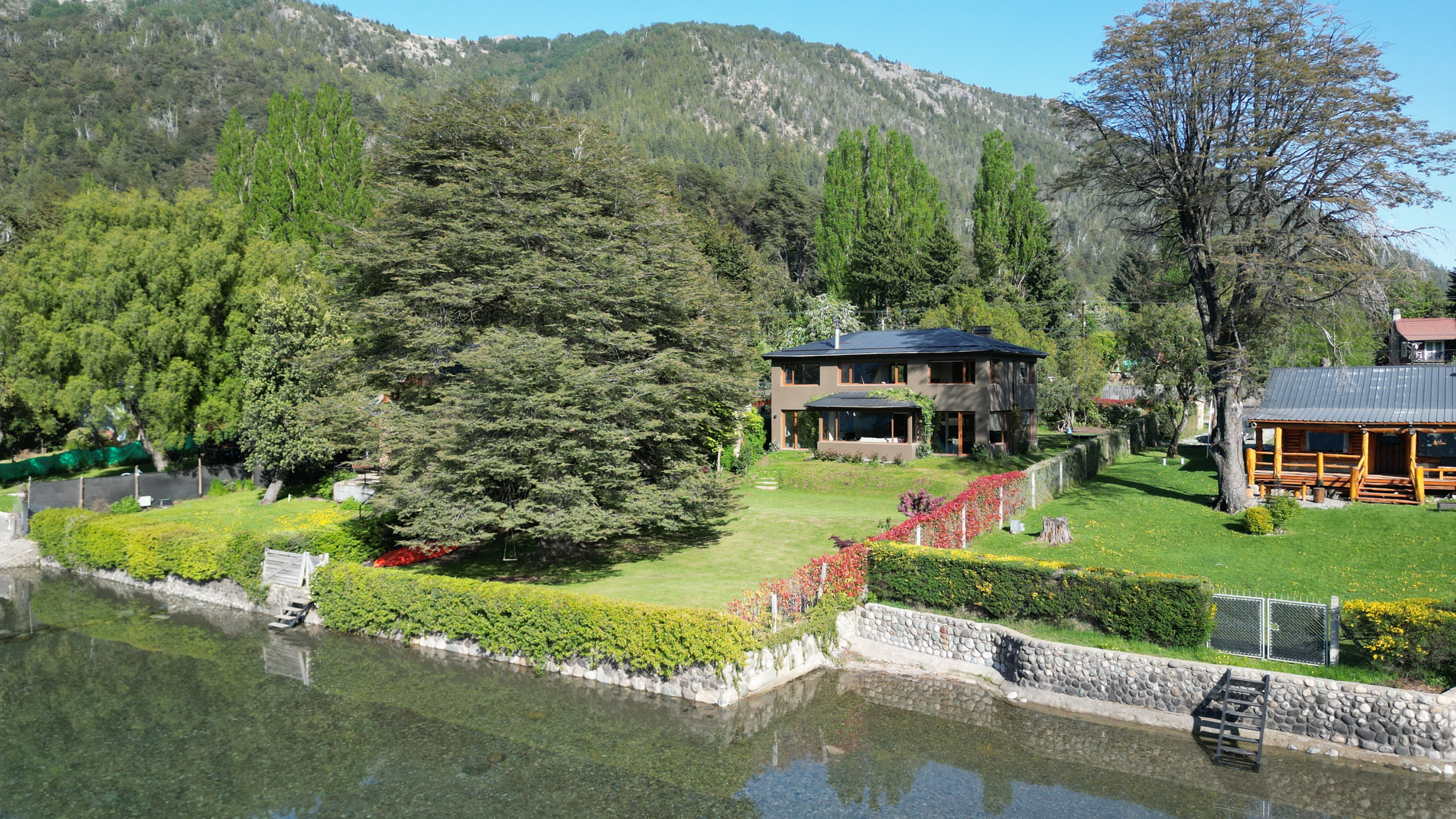 Casa linda à beira do lago com vista incrível para as montanhas e o Lago Gutiérrez. Bonita e confortável, sem luxos.