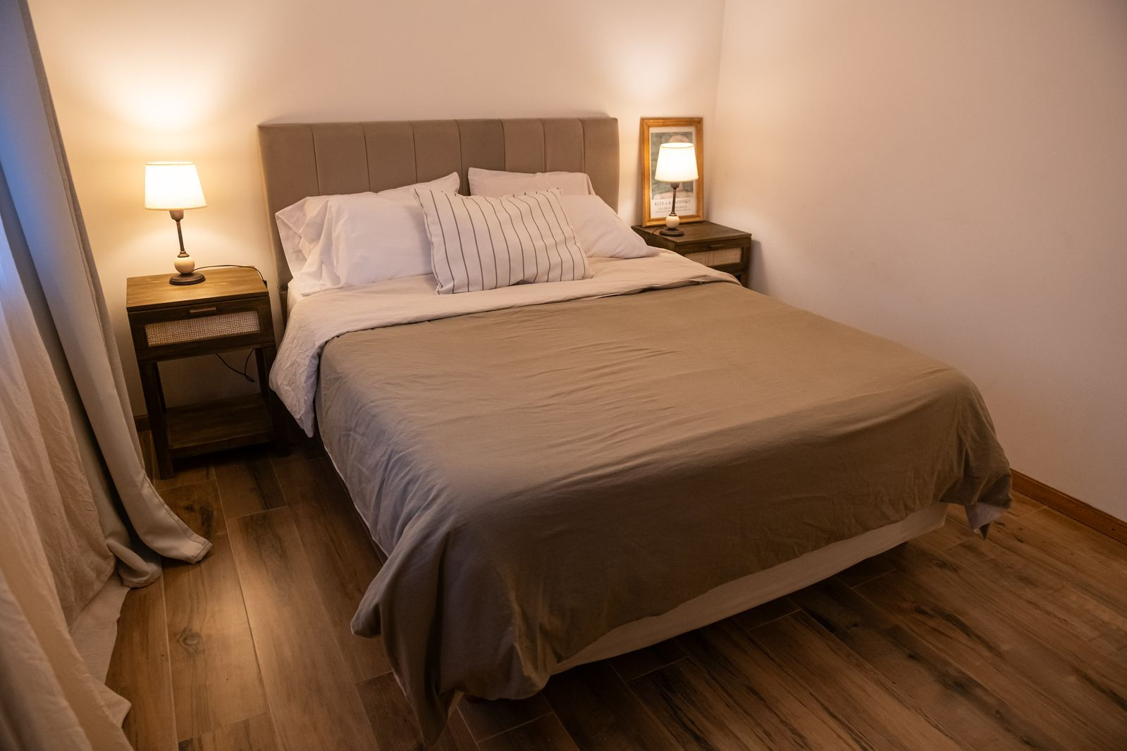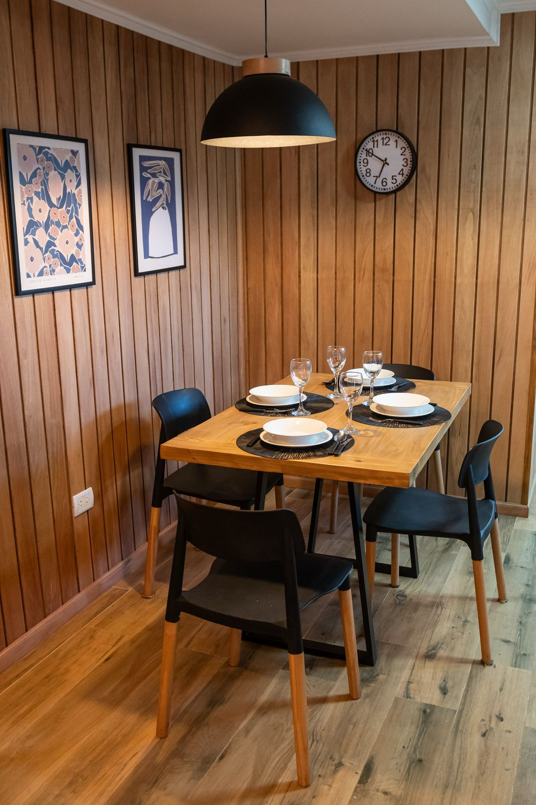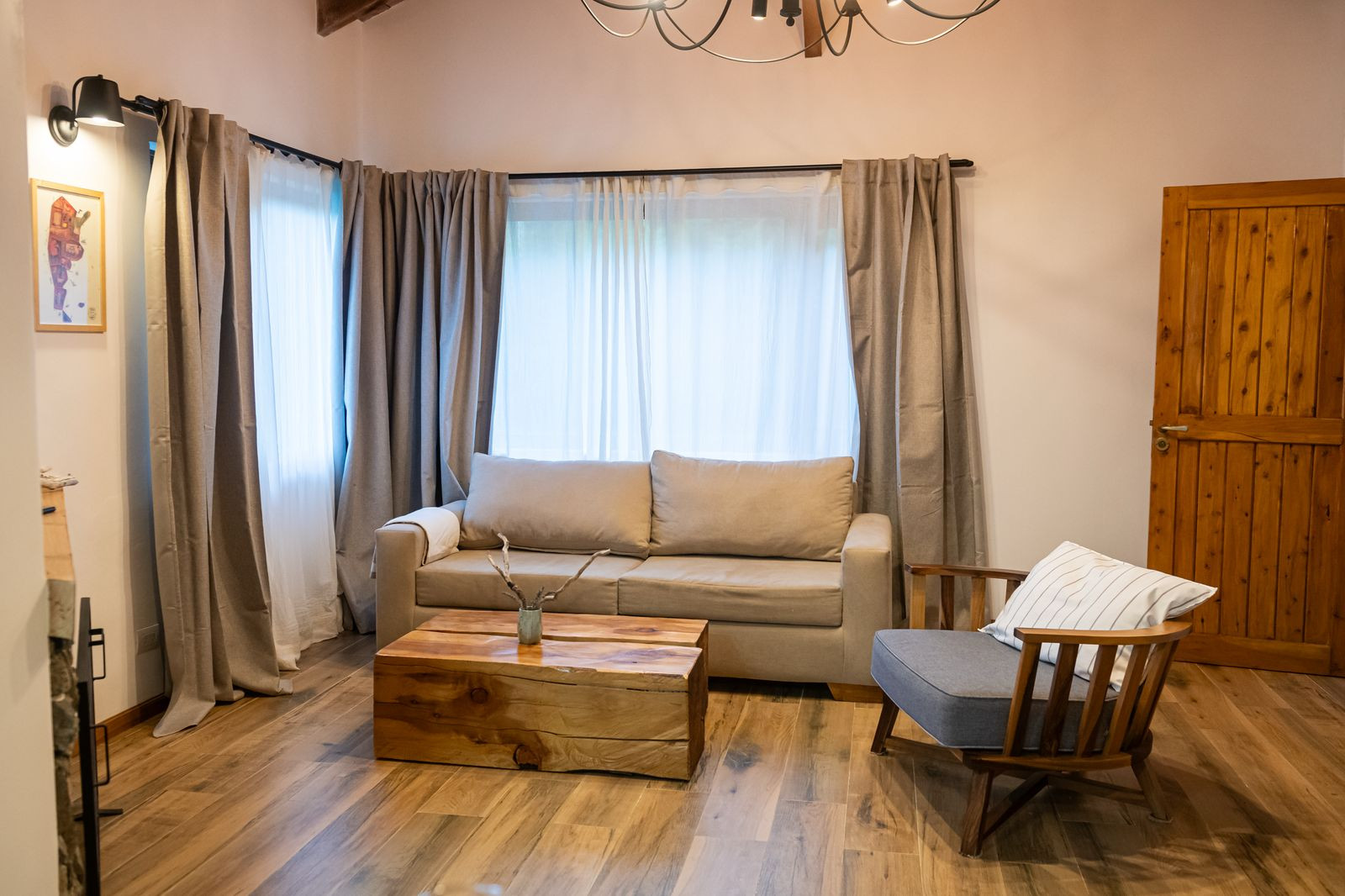 Casa Los Pinos localizada a apenas 10 minutos do centro de carro, com capacidade para 5 pessoas. A propriedade dispõe de 2 quartos, um deles com um beliche e uma cama extraível, um banheiro completo e um lavabo. A sala de estar com cozinha integrada inclui um sofá, mesa de centro e uma mesa com 6 cadeiras.