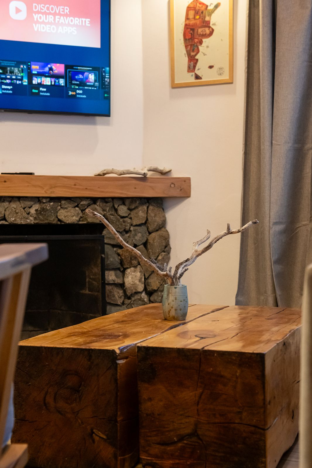 Estúdio ou sala de jogos no andar superior com vista para a sala de estar