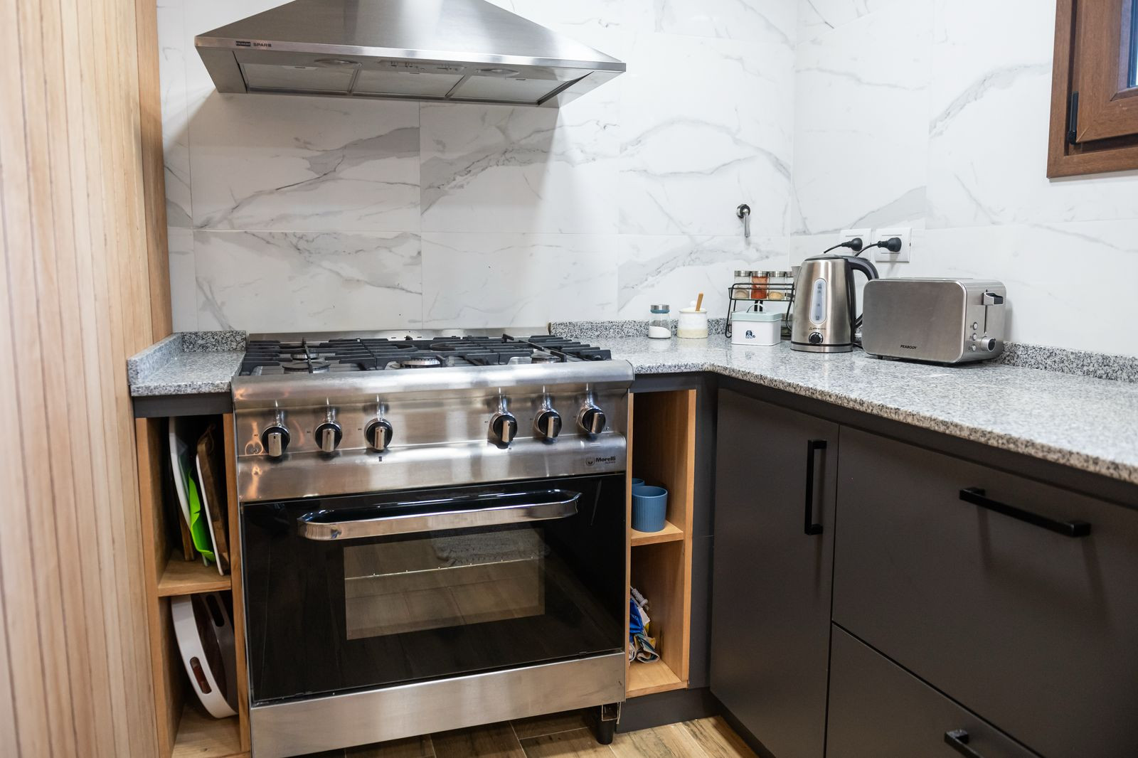 Cozinha completa 100% equipada (lava-louças, Nespresso Latissima Pro, micro-ondas, geladeira com freezer)