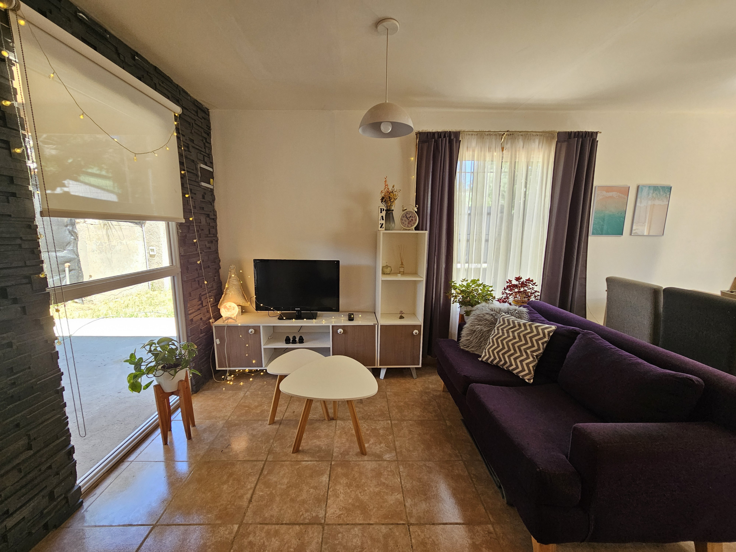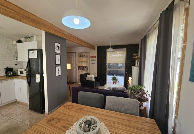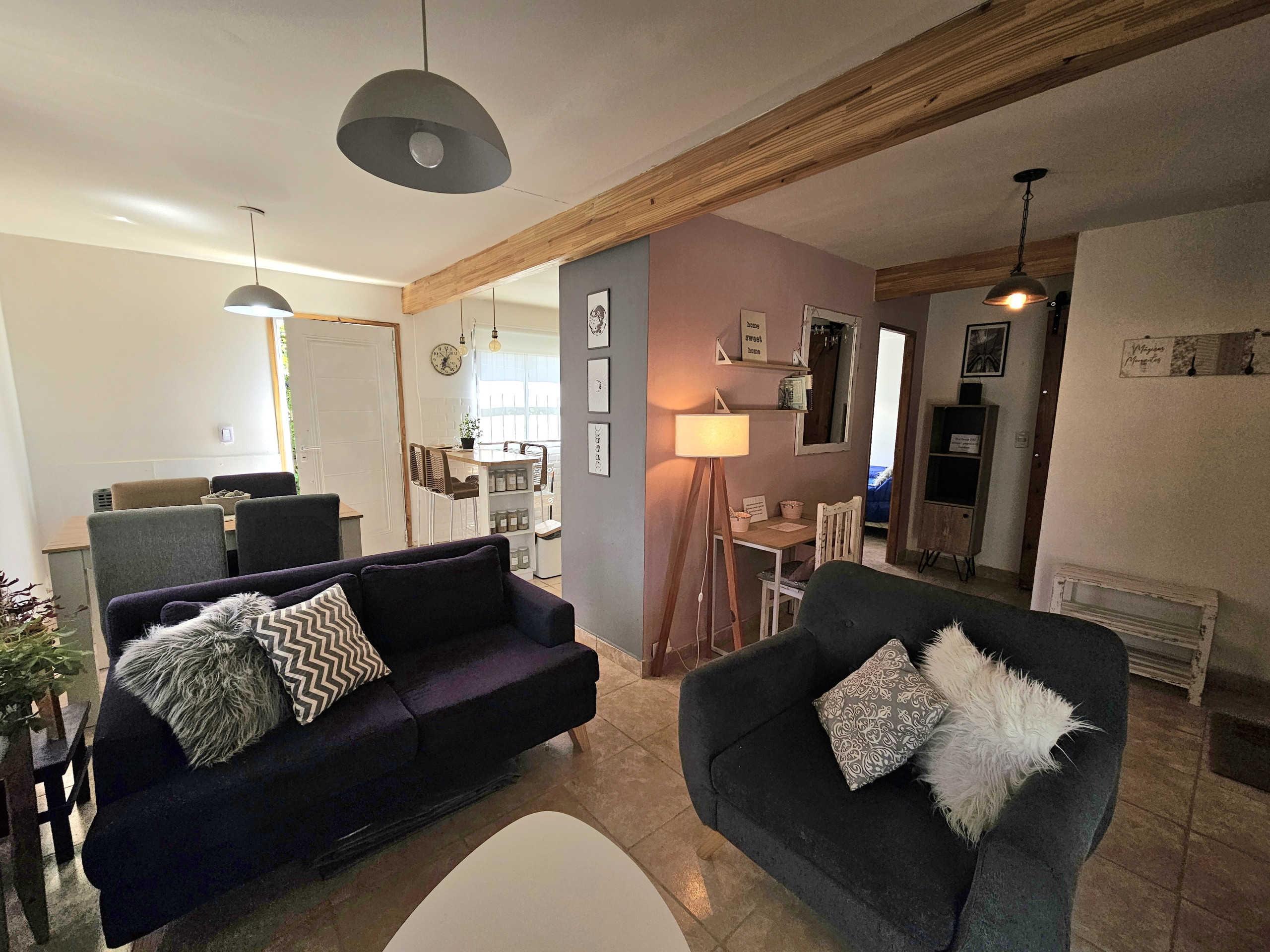 Casa Los Pinos localizada a apenas 10 minutos do centro de carro, com capacidade para 5 pessoas. A propriedade dispõe de 2 quartos, um deles com um beliche e uma cama extraível, um banheiro completo e um lavabo. A sala de estar com cozinha integrada inclui um sofá, mesa de centro e uma mesa com 6 cadeiras.