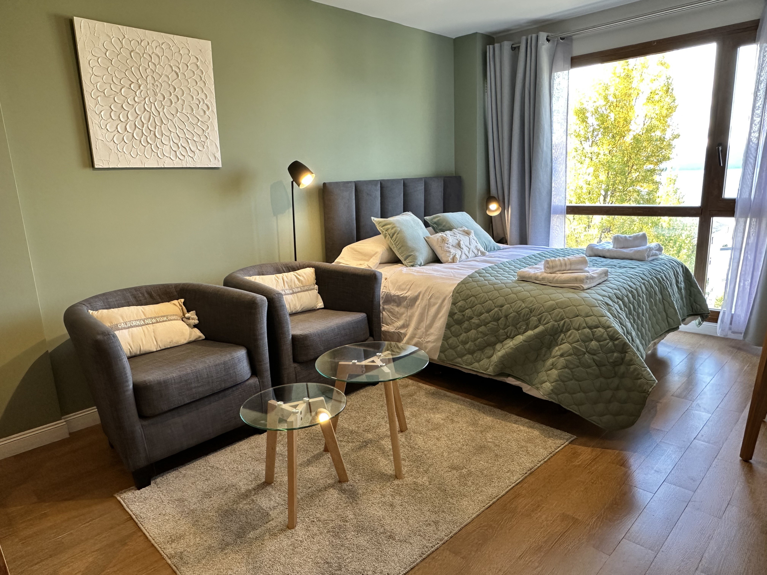 É um apartamento de um ambiente com uma vista espetacular para o lago, perfeito para aproveitar alguns dias nesta linda cidade!