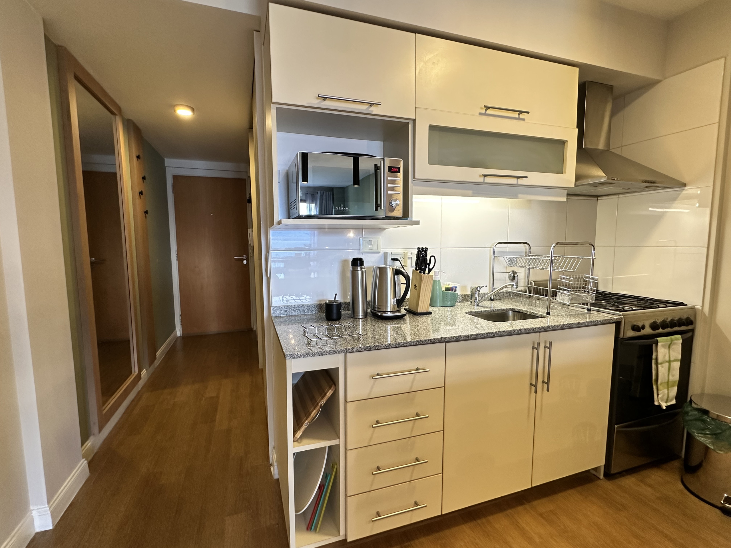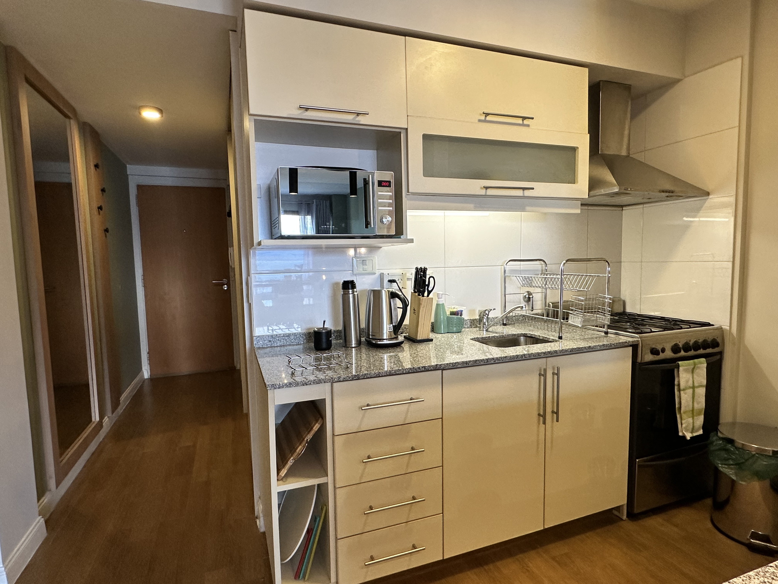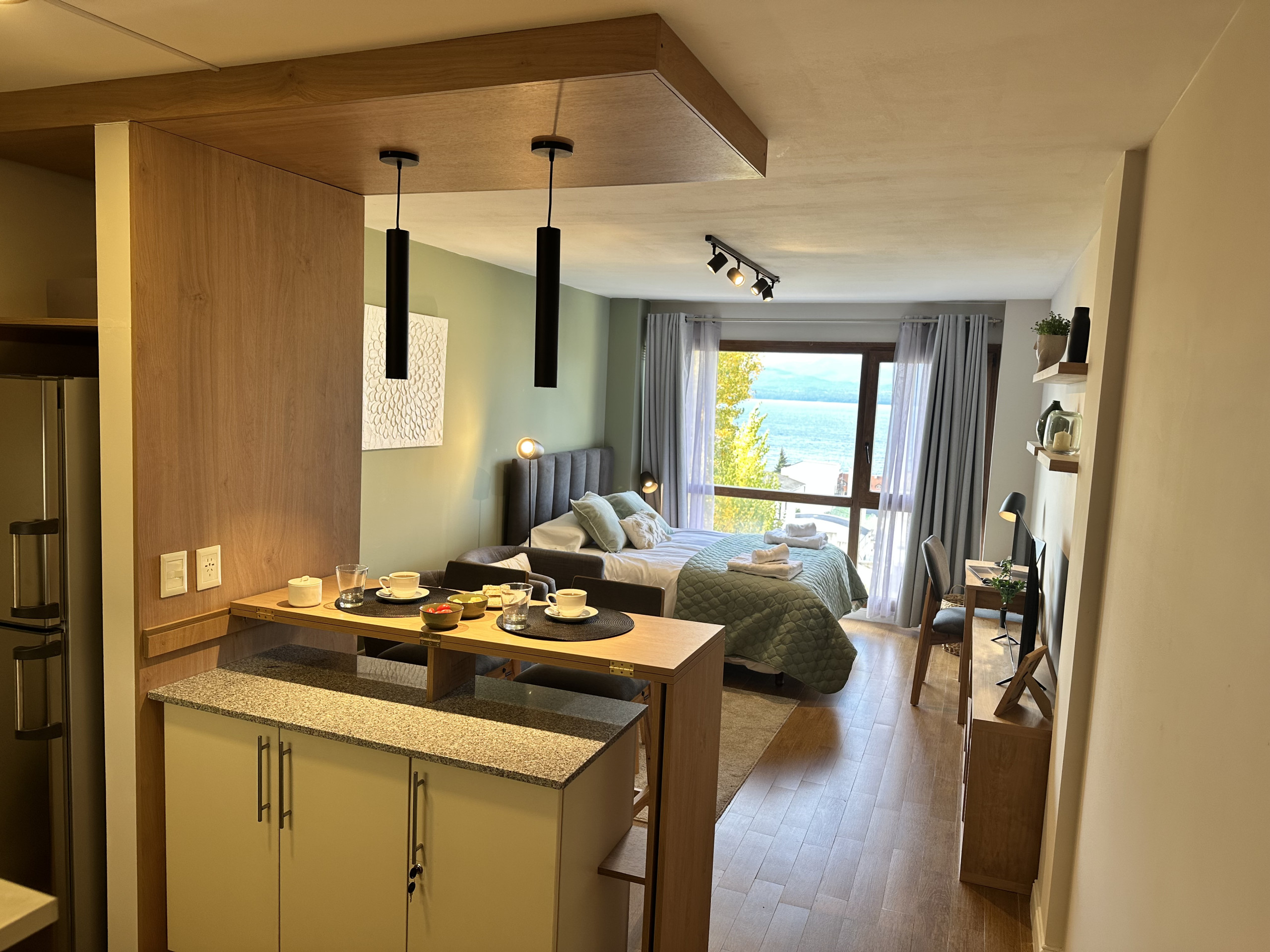 O departamento está localizado no centro de Bariloche, é um apartamento de um ambiente para duas pessoas moderno e com vistas incríveis para o nosso querido lago Nahuel Huapi, conta com cama de casal, cozinha completamente equipada com micro-ondas, torradeira, chaleira elétrica, fogão a gás e todos os utensílios necessários para que possam cozinhar. O aquecimento do apartamento é por radiadores. Banheiro completo com banheira.
