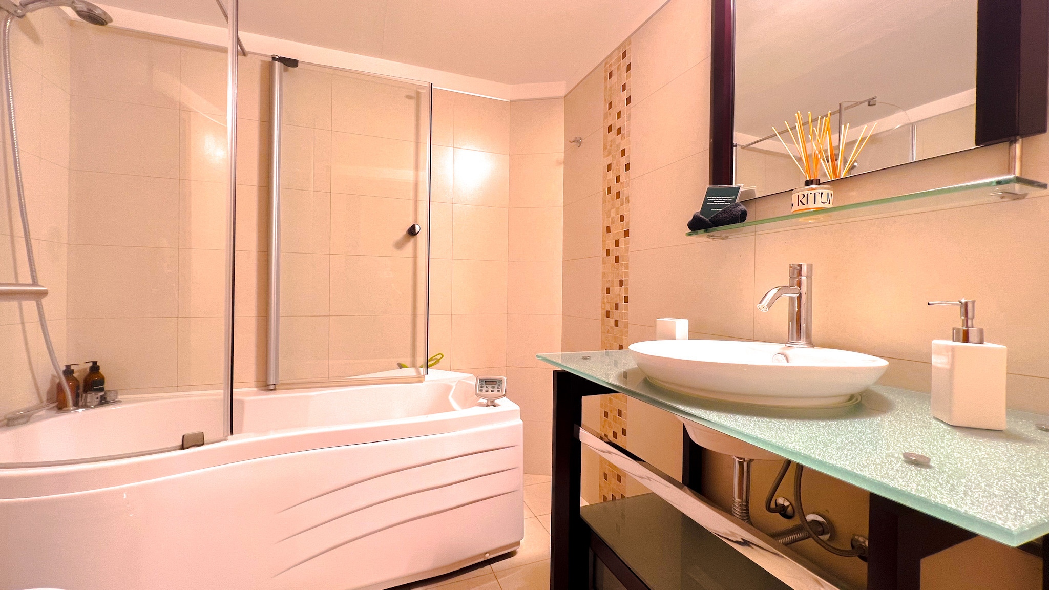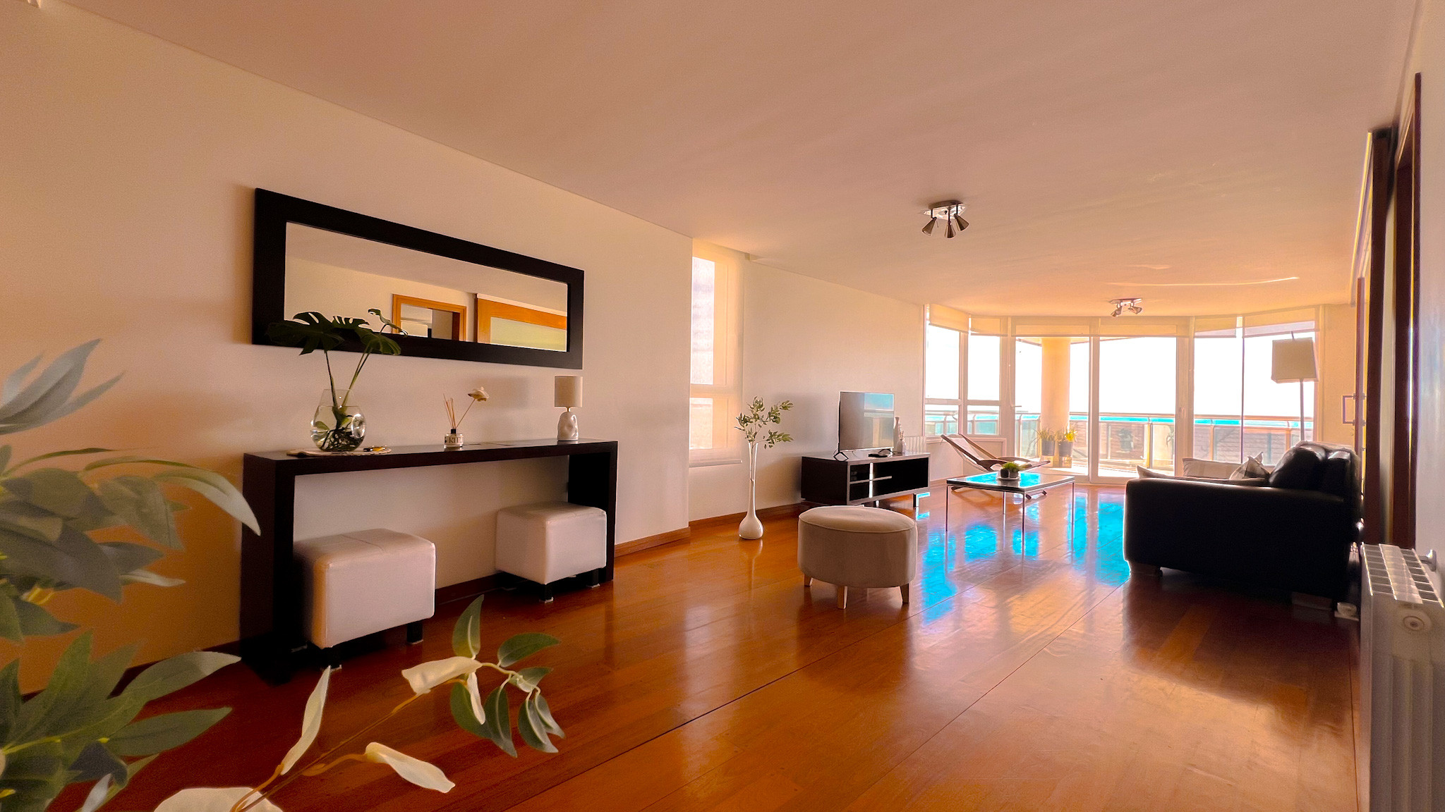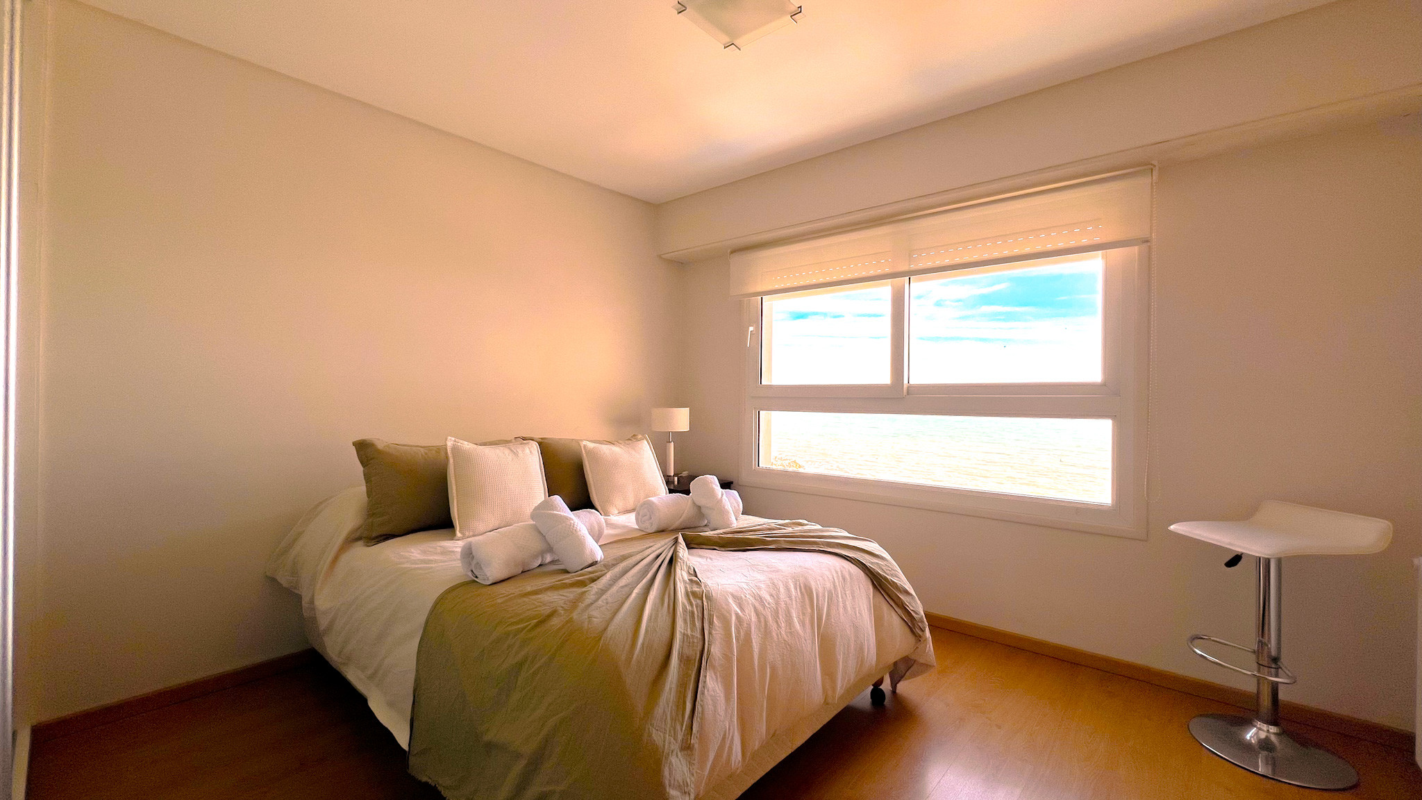 El living comedor cuenta con un sillón con TV (y transmisión para streaming de apps) donde vas a poder relajarte mirando el mar. Tiene balcón amplio. La cocina está totalmente equipada para que puedas cocinar si así lo preferís. Incluso cuenta con lavarropas y lavavajillas. Además cuenta con 3 dormitorios: el principal en suite con balcón con vista al mar que nos encanta para poder disfrutar de la vista sintiéndote en un hotel. El segundo dormitorio cuenta con cama doble y vista al mar. La tercera, dos camas simples. Además, vas a contar con toilette en la recepción. El edificio es apto movilidad reducida y cuenta con seguridad 24 hs. Esta propiedad cuenta con cochera doble privada y techada en el edificio.