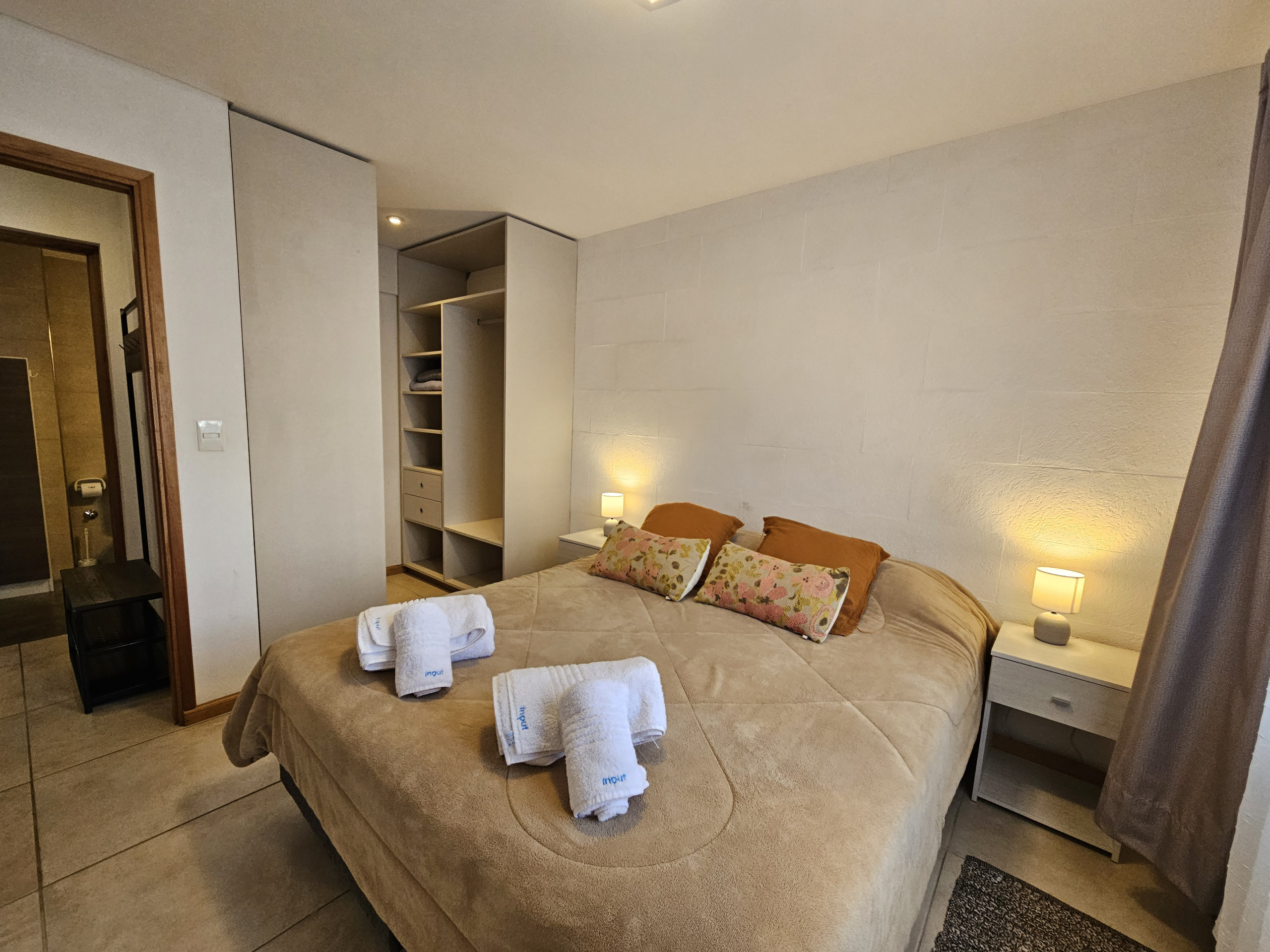 El apartamento cuenta con un dormitorio principal con una cama matrimonial y un sofá-cama adicional, ideal para quienes viajan con amigos o familia. Dispone de un baño completo con bañera, calefacción central para los días más fríos y conexión WiFi para mantenerte comunicado durante tu estadía.