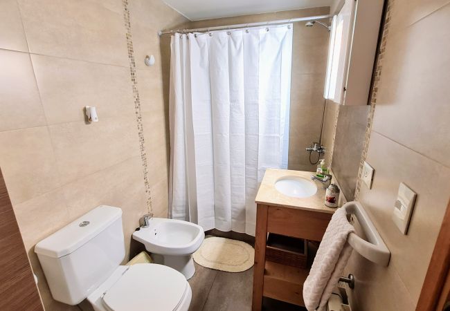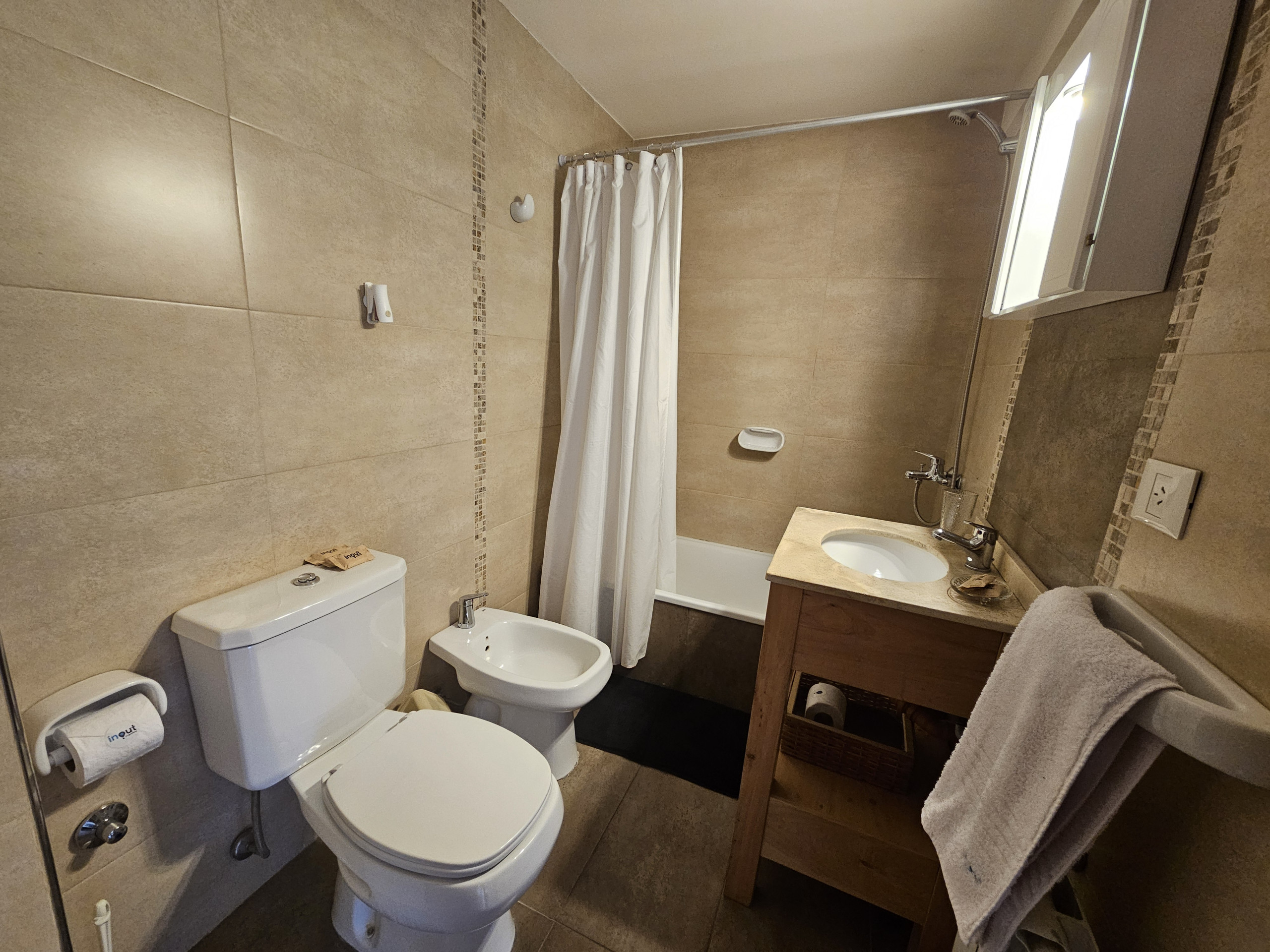 El baño está equipado con una bañera y secador de pelo. En el living encontraras una mesa con 4 sillas, ideal para disfrutar de comidas en familia o con amigos. También contamos con un diván cama, Cama Arriba y cama abajo, el carri-cama es recomendado para niños ya que no tenemos posibilidad de poner un colchón mas alto.
