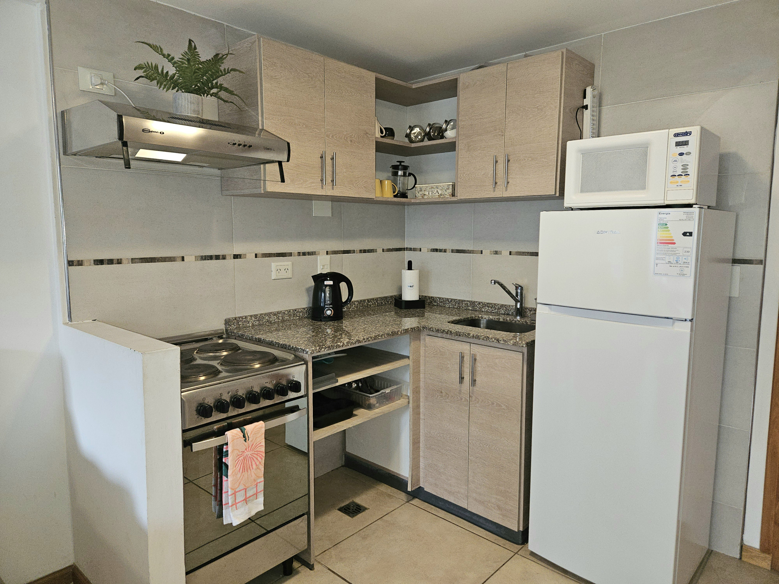 La cocina americana está completamente equipada con electrodomésticos modernos como refrigerador, horno, microondas, cafetera, tostadora y hervidor. Encontrarás todos los utensilios necesarios para preparar deliciosas comidas y disfrutar de momentos gastronómicos.