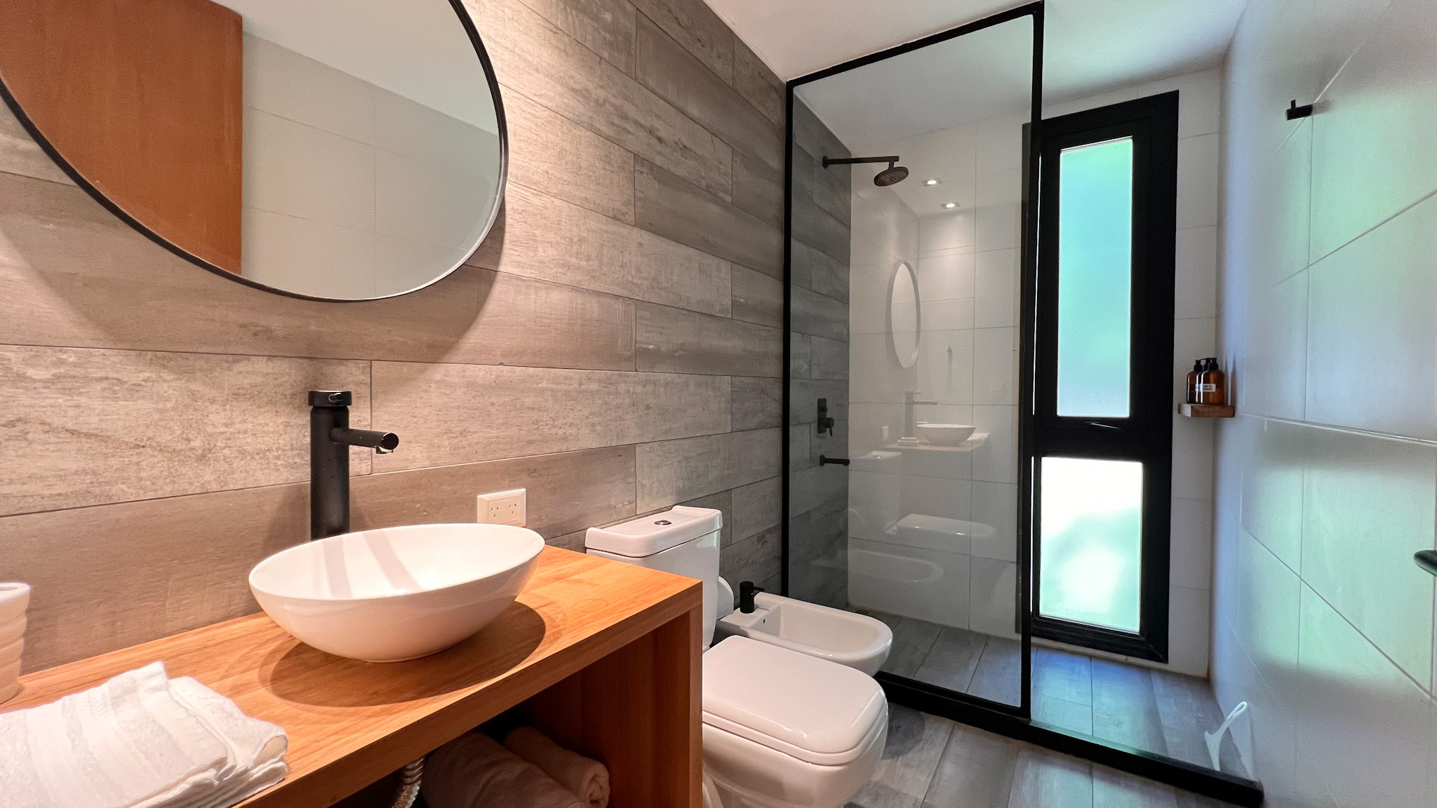 Los espacios se conectan únicamente a través de la zona común: una pileta espectacular con molino, el único ambiente compartido del complejo.