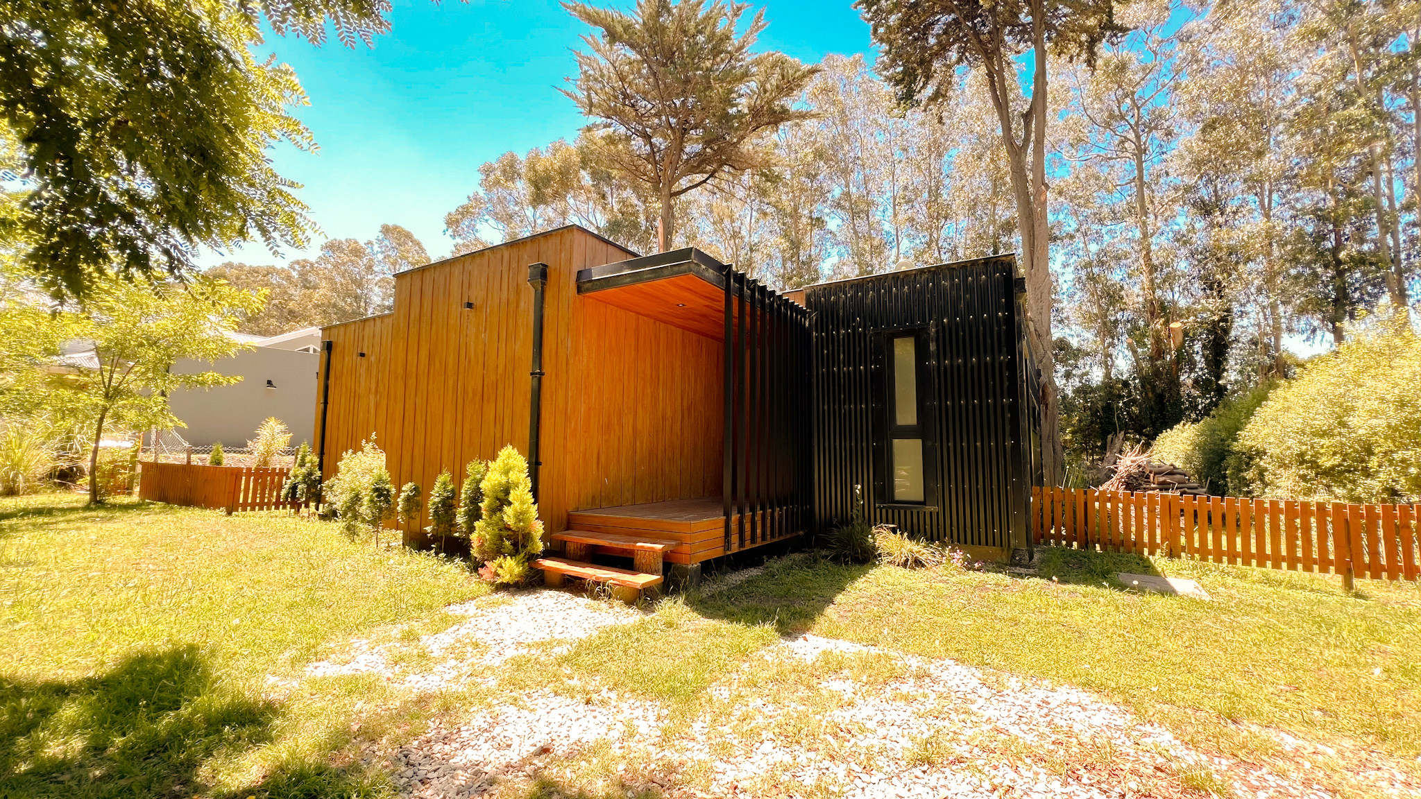 Dentro del predio vas a encontrar cinco casas independientes, cada una pensada para recibir hasta 4 personas. Tienen entrada privada, un dormitorio con cama doble, baño completo y un living-comedor con cocina integrada. El sillón cama del living cuenta con black out para asegurar buen descanso, y todas las casas tienen jardín propio con galería, parrilla, fogonero y solarium, además de aire acondicionado frío/calor y mosquiteros.