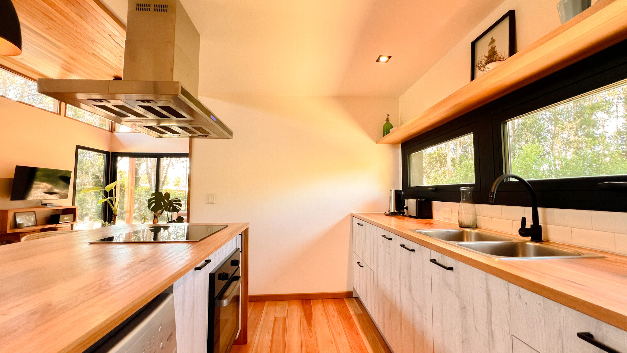 Esta casa cuenta con un living, comedor y cocina integrada muy acogedor. Una cocina totalmente equipada y nueva con todo lo necesario para hacer tus comidas favoritas, lavarropas integrado en la cocina, comedor amplio y living con smart TV y un sillón con la luz de tarde más linda que vas a encontrar. Cuenta además con 1 dormitorio principal y un segundo dormitorio con dos camas individuales que se pueden juntar formando una sola. Ideal para parejas amigas o familias. El baño completo se comparte entre ambos dormitorios y 1 toilette al ingreso hace cómodo el uso y espacio de la casa.