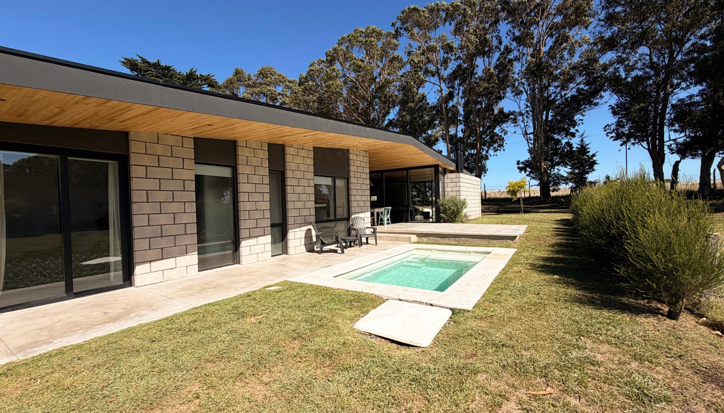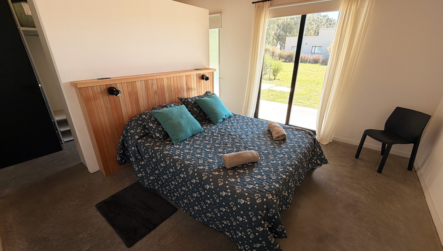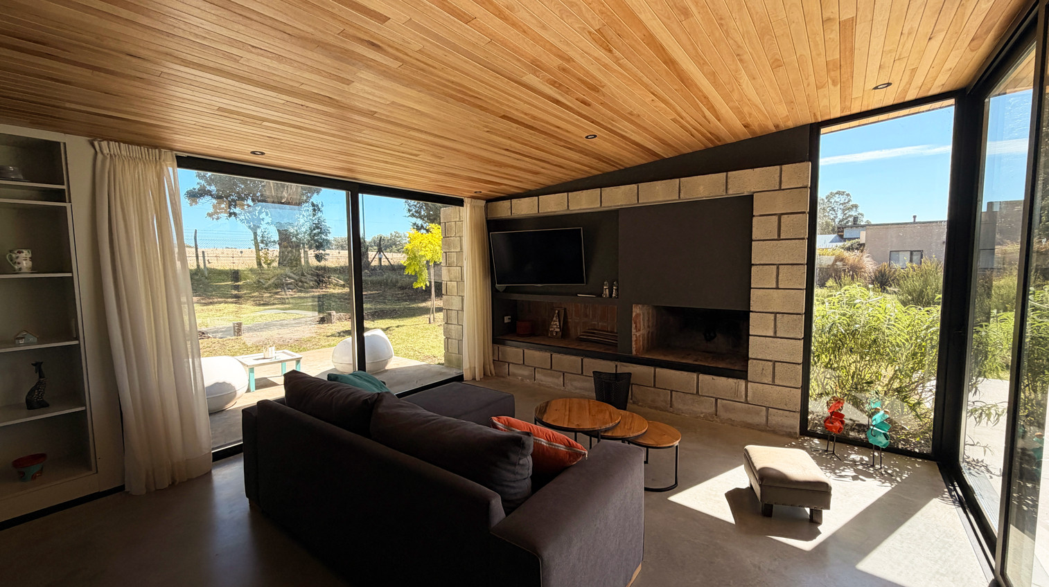 Nuestra Casa es ideal para amigos o familias ya que cuenta con 3 dormitorios pensado para 2 personas cada uno: el principal en suite con vestidor y salamandra en el mismo dormitorio (y no hablar de la vista espectacular al campo). El segundo dormitorio cuenta con 2 camas individuales y el tercero con cama estilo “cucheta”, más pequeño pero igual de cómodo y luminoso. Además, una cocina integrada con barra, comedor y living con smart TV y salamandra, y una galería techada con parrilla bien integrada a la casa.