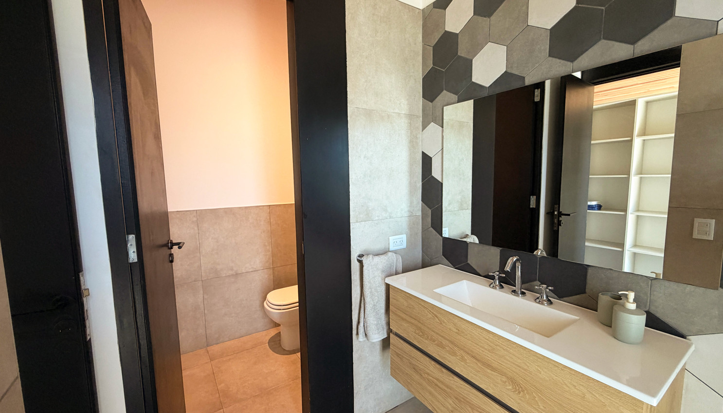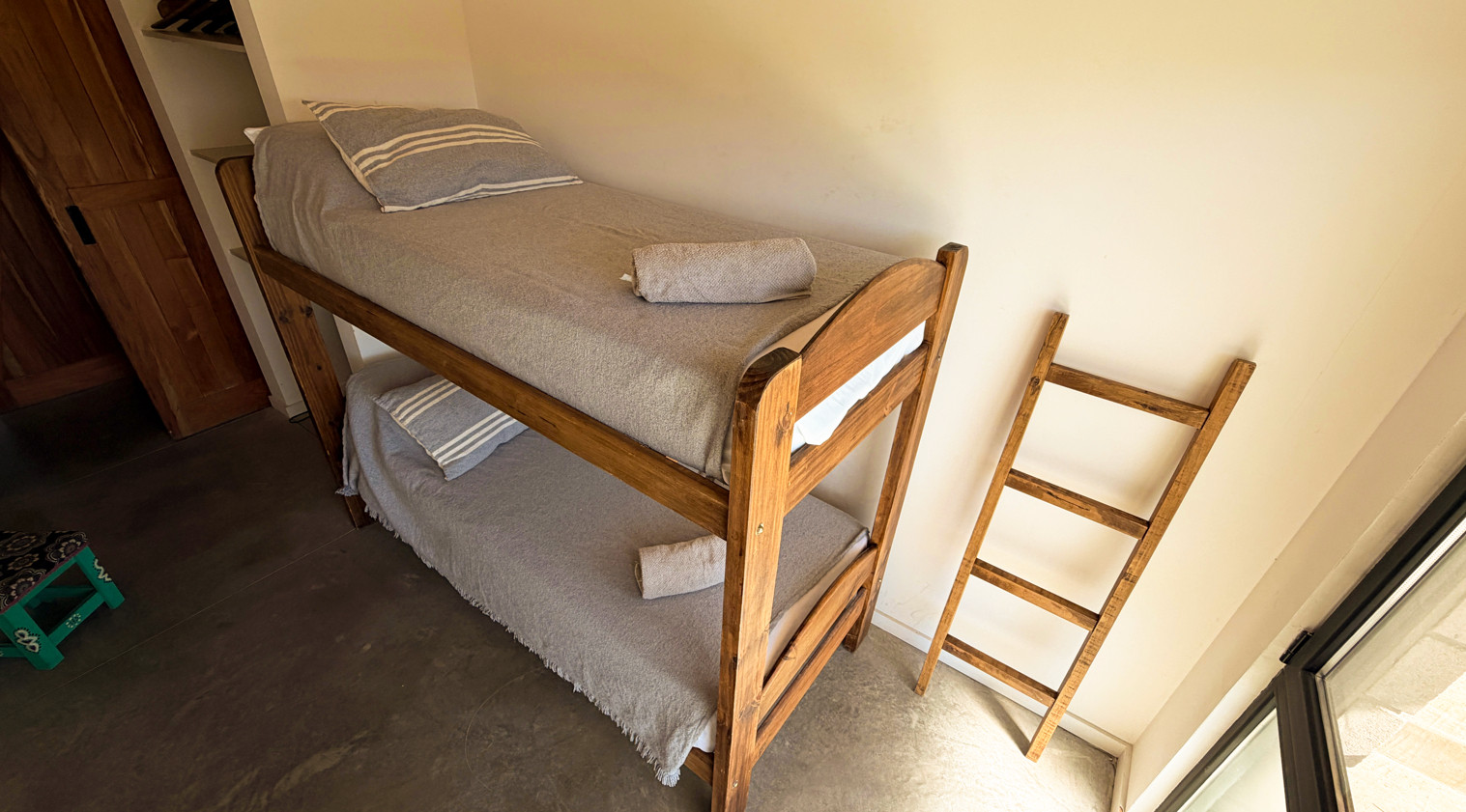 También disponen de un baño completo con ducha y una cocina integrada, totalmente equipada para que no falte nada durante la estadía. El living es ideal para relajarse después de un día de playa, y además cuentan con espacio para guardar tablas de surf.