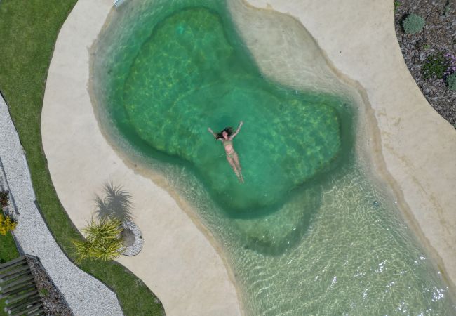 Los espacios se conectan únicamente a través de la zona común: una pileta espectacular con molino, el único ambiente compartido del complejo.