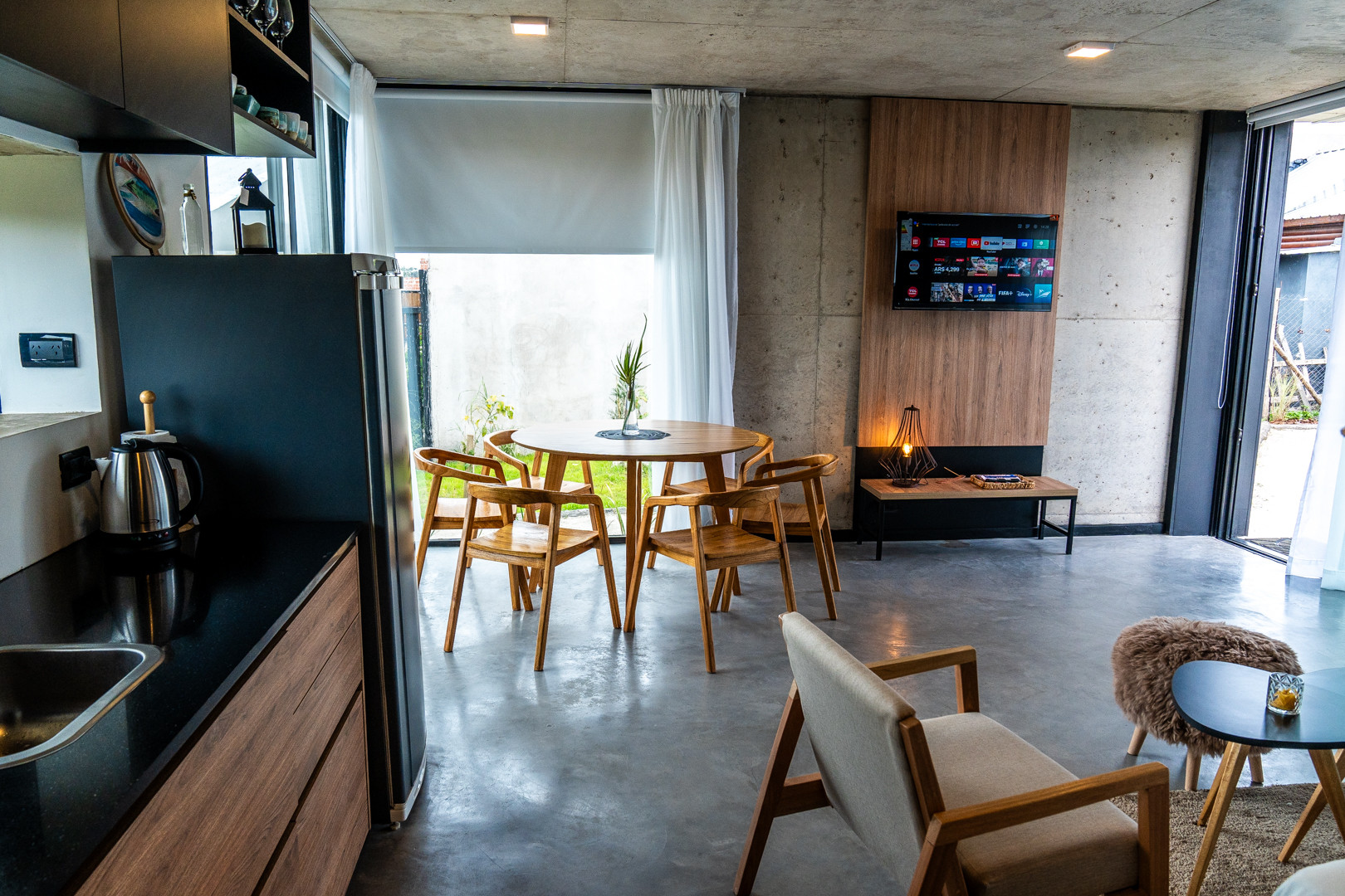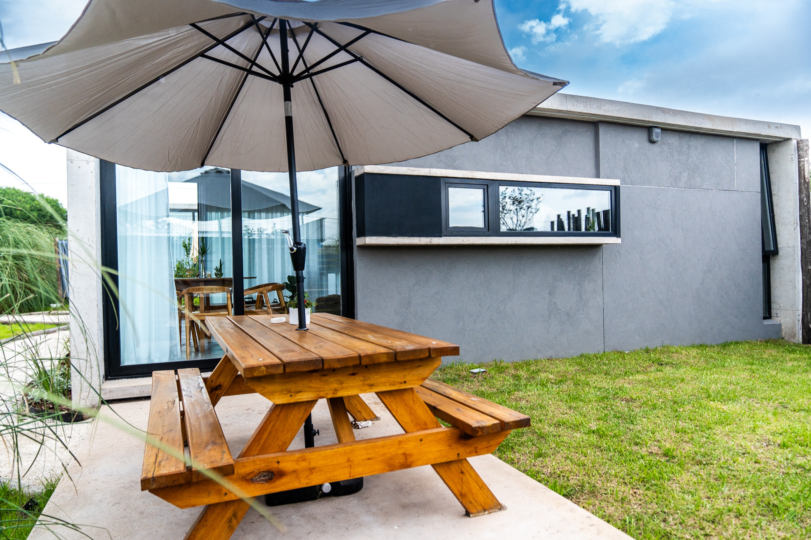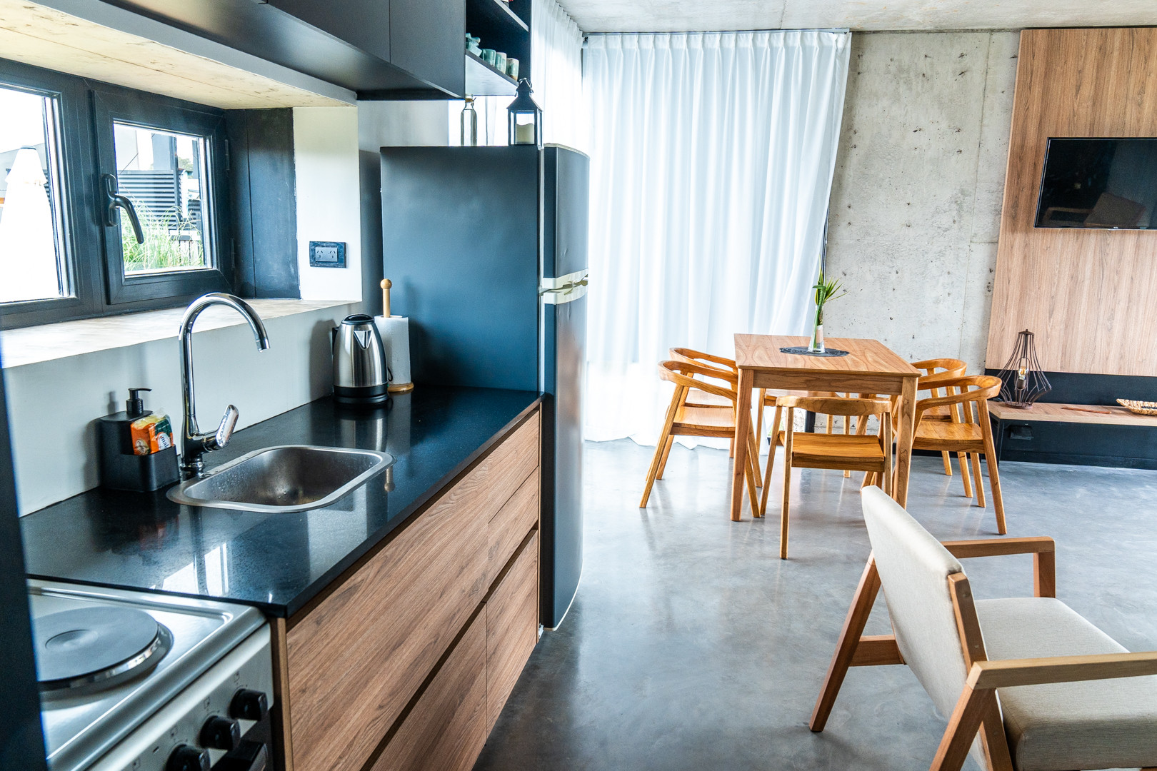Cada casa cuenta con un living-comedor con cocina integrada. En el mismo se encuentra un sillón-cama estilo marinera con colchones muy cómodos y cortinas black out. n baño principal y un dormitorio, todo a estrenar. En el exterior vas a contar con una parrilla estilo chulengo, mesa de comedor con sombrilla y un living exterior en el frente de la casa para disfrutar todo el día. Además, con espacio abierto para guardar auto, ¡no podemos pedirle más!