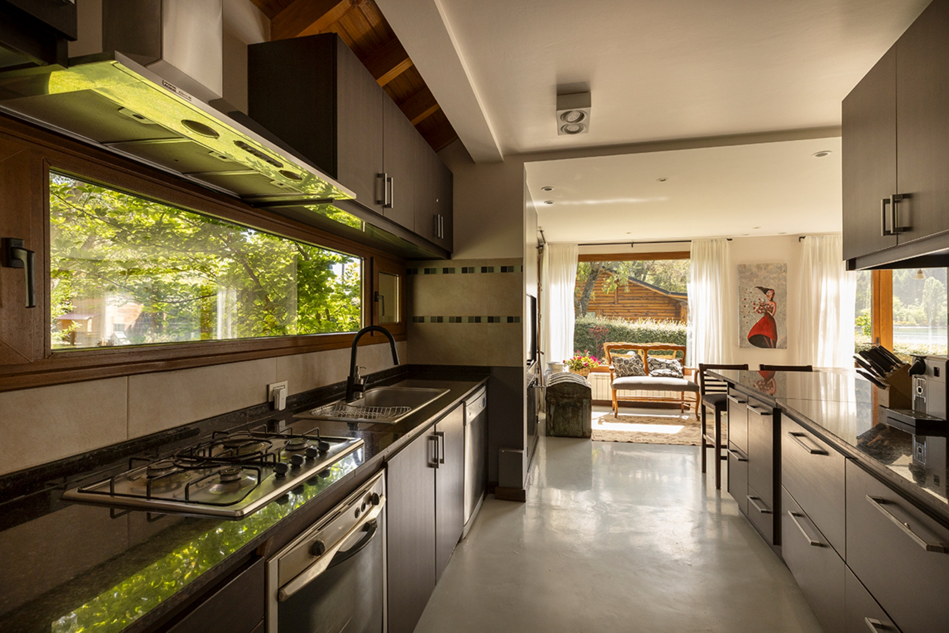 La cocina moderna está totalmente equipada con horno, lavavajillas y todo lo necesario para una estadía práctica y placentera.