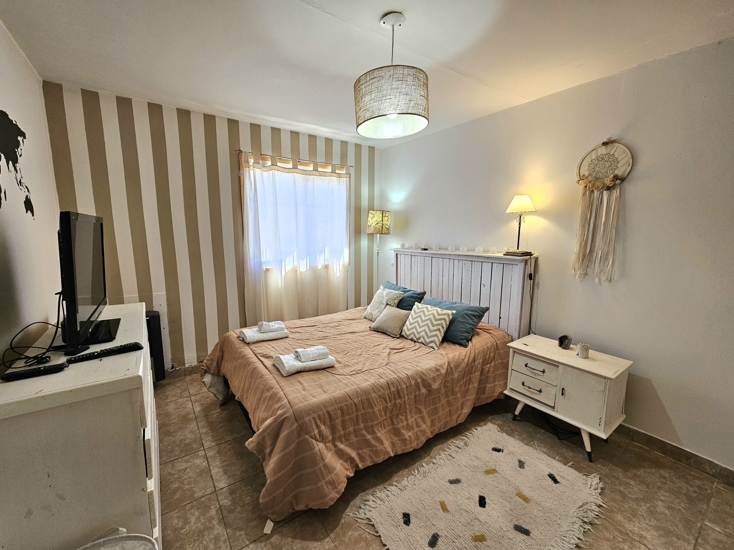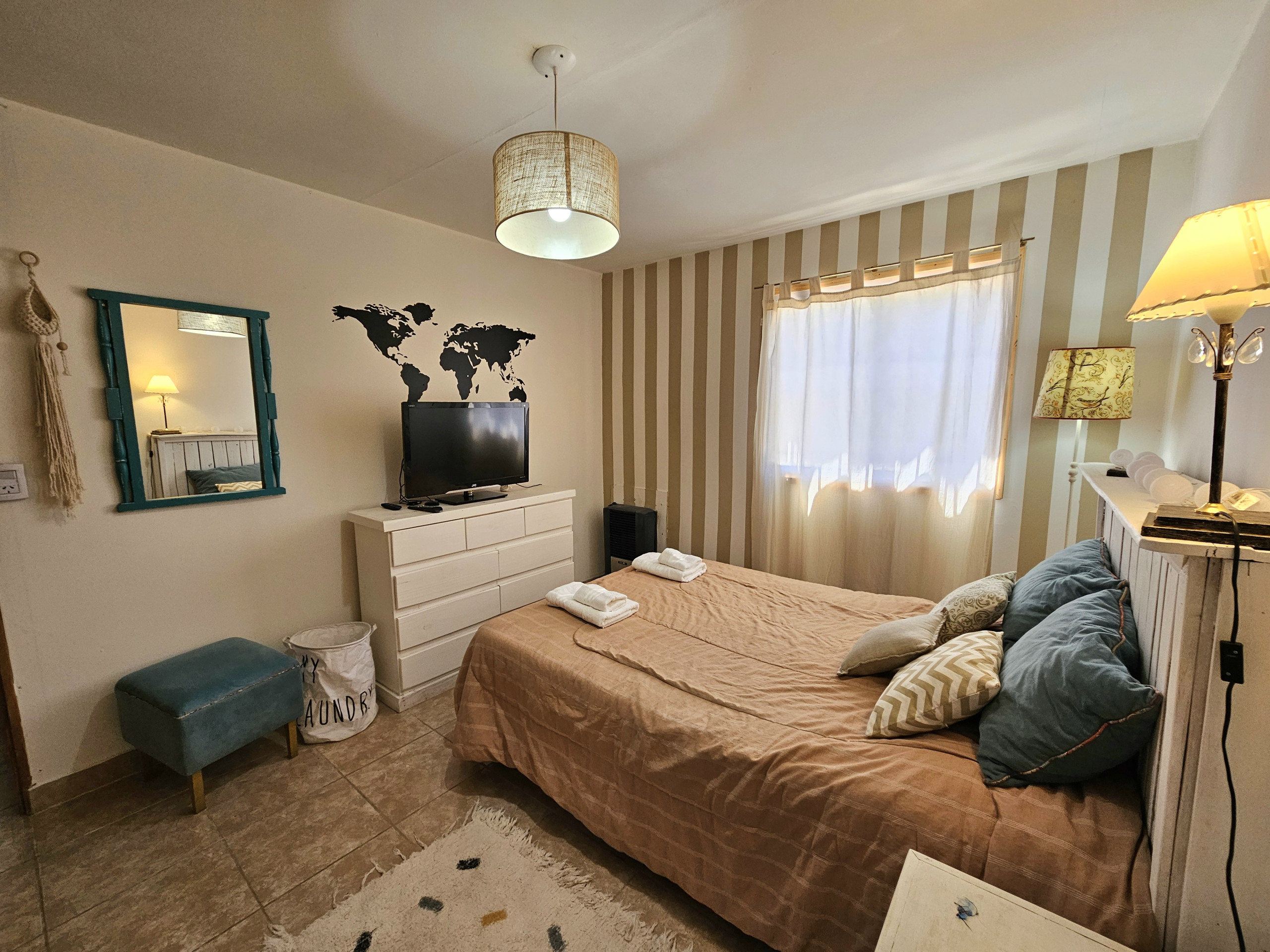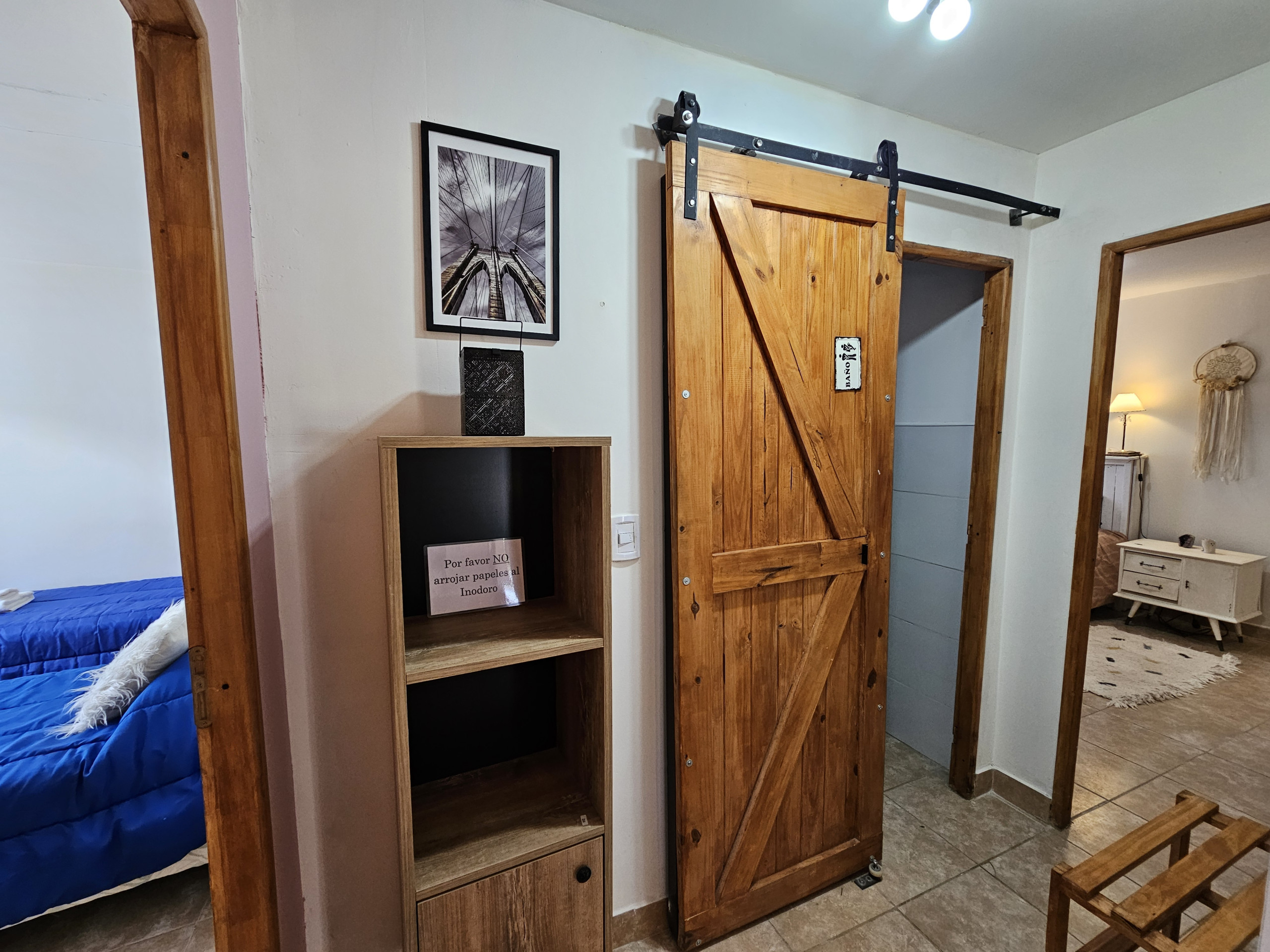 La propiedad cuenta con 1 baño completo con ducha. una habitacion con dos camas y la segunda habitacion con una cama matrimonial.