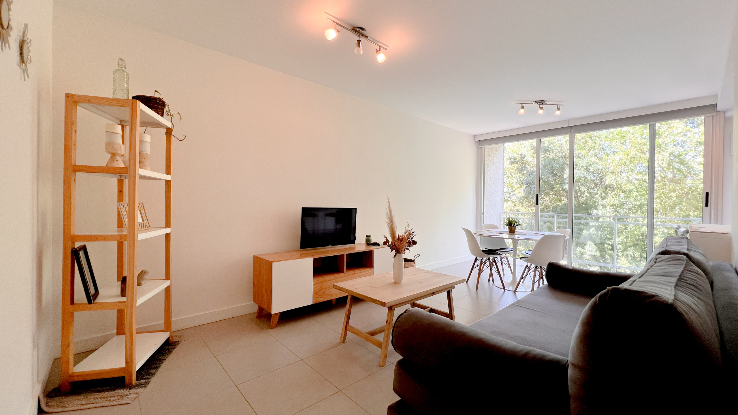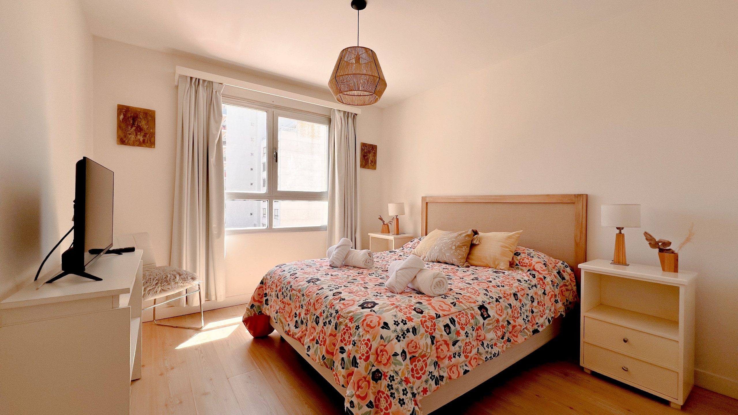 Dept Al is located in front of a square in the San Carlos neighborhood, which is why it offers a lot of greenery from the living room window. It is a fully equipped apartment for short and long stays. It is practical because it has one bedroom but with two very comfortable beds in the living room that function as a sofa and allow 4 people to comfortably fit in the apartment. It is chosen by families or friends who do not require much privacy when sharing the common living space. It has an integrated kitchen, breakfast bar, balcony, and 1 full bathroom. Additionally, you will have a parking space inside the building to enter and exit quickly and an alarm system in the building so you don't have to worry about anything.