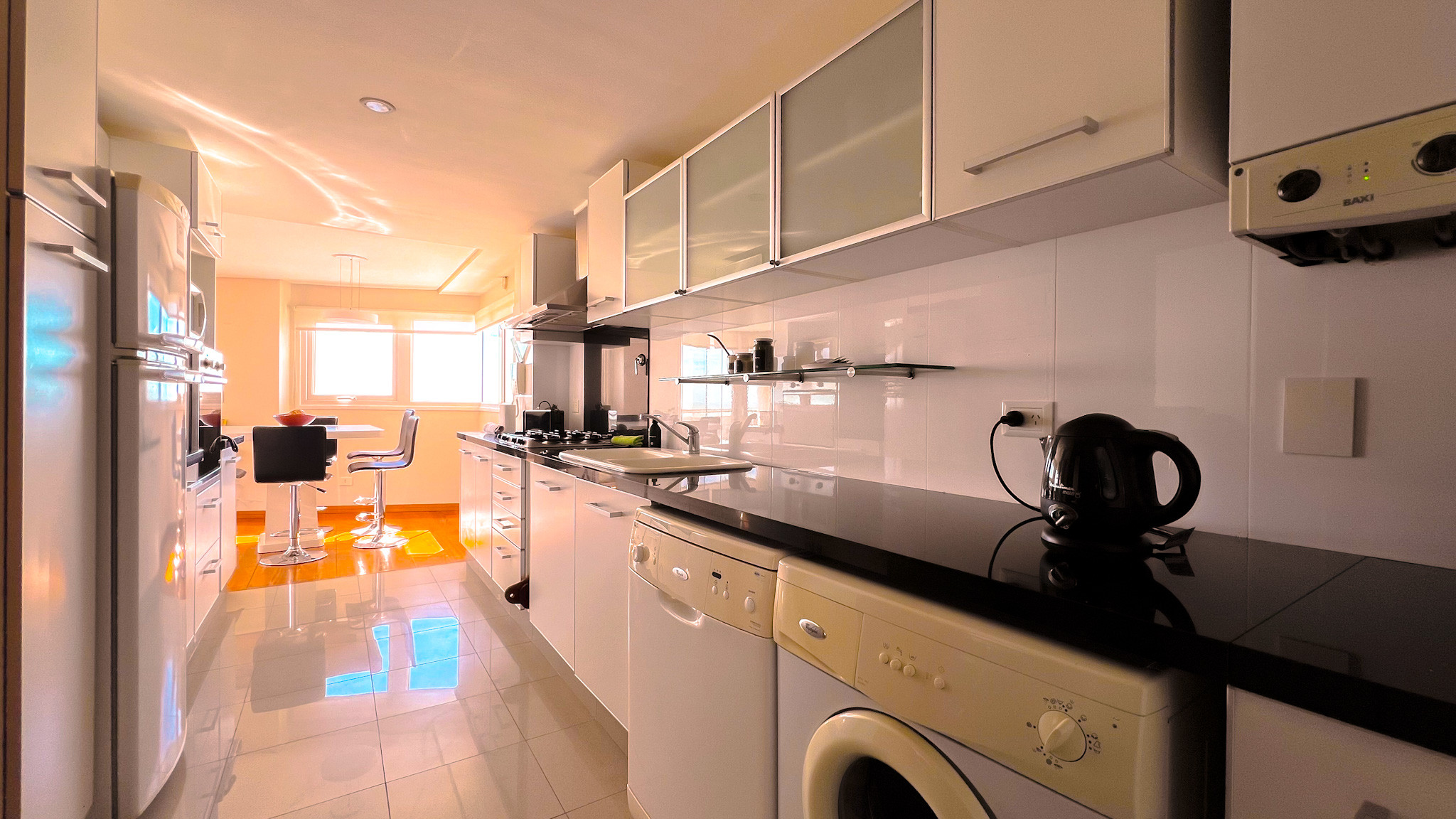 From the kitchen and living dining room you will be able to enjoy the spectacular view of one of the most beautiful beaches in Mar del Plata, with a calm sea and one of the most beautiful areas to go out walking at any time of the day.
