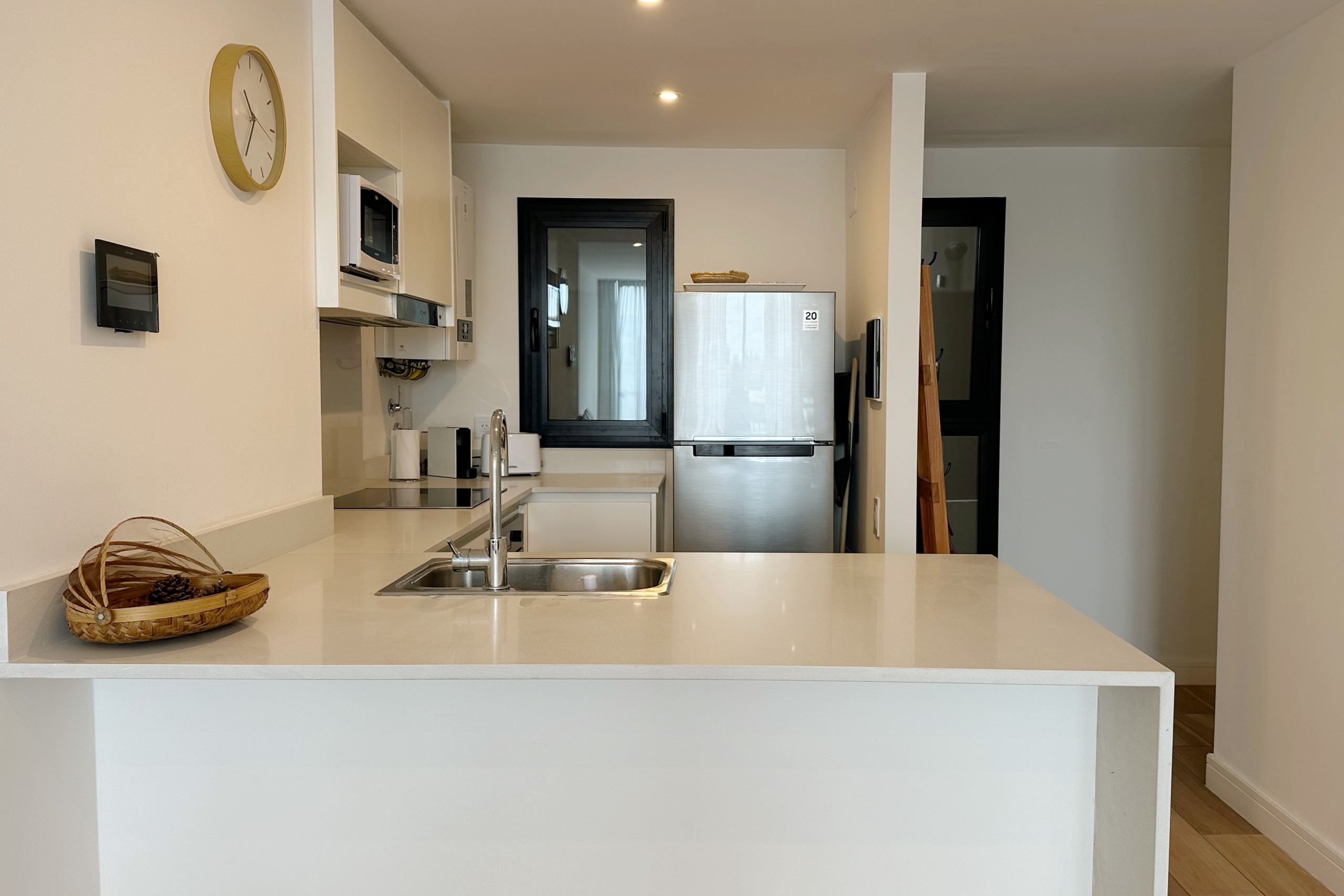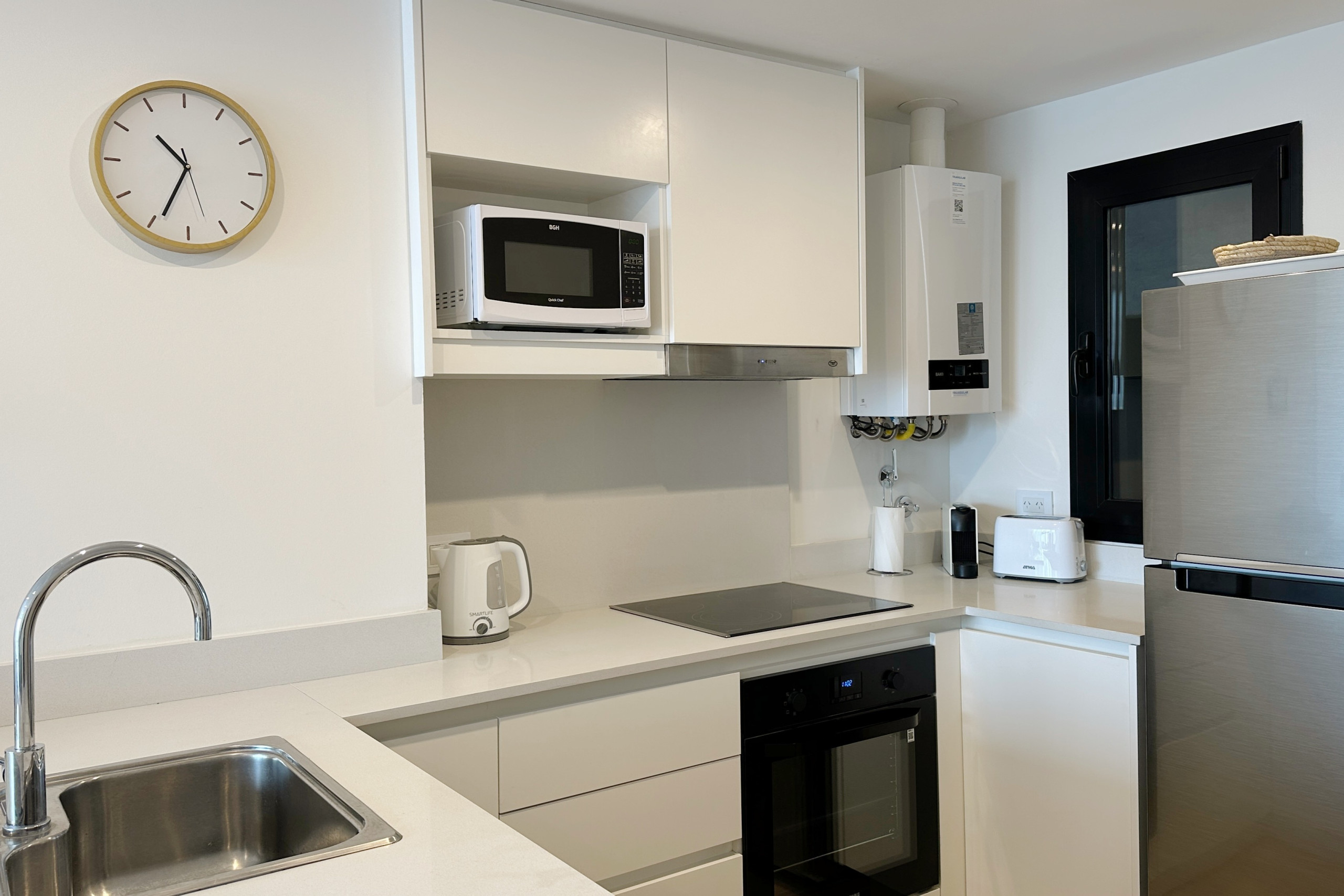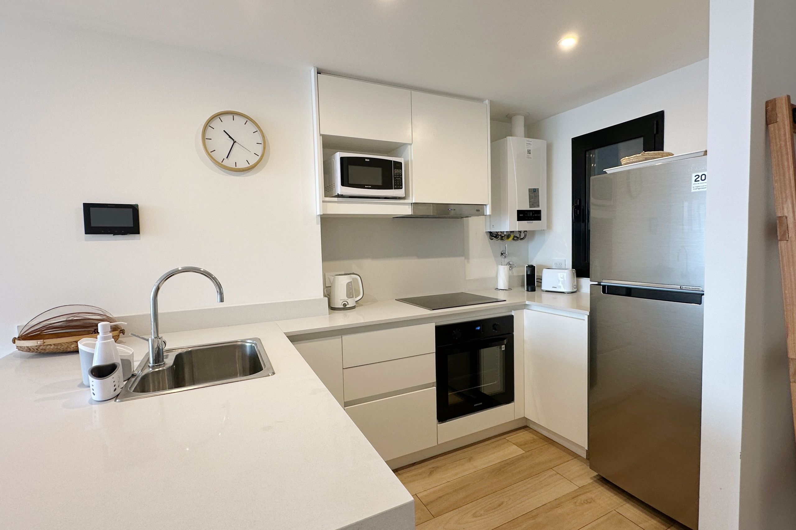The kitchen is completely equipped and renovated with top-quality appliances. It includes a washing machine and a complete and super practical bathroom.