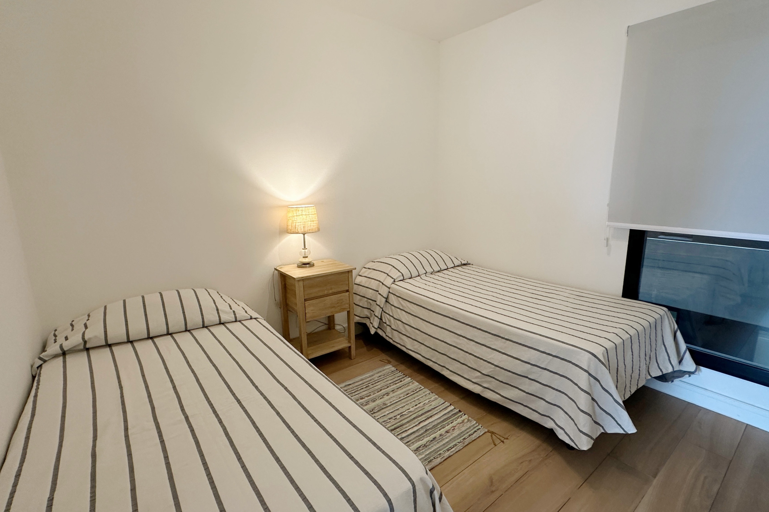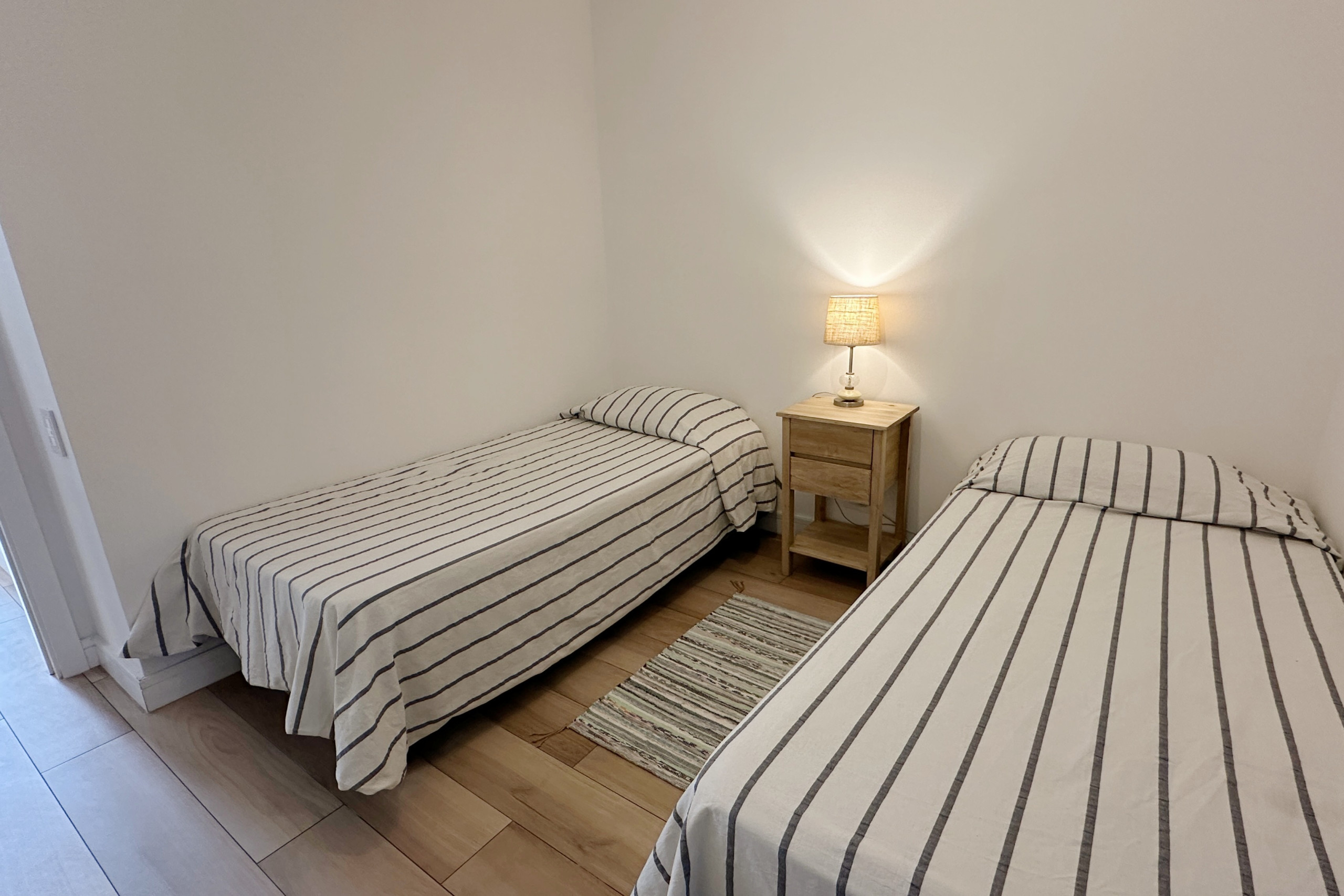 It has 1 master bedroom and 1 bedroom with two single beds. The apartment has a parking space in the building so you don't have to worry about anything other than enjoying yourself.