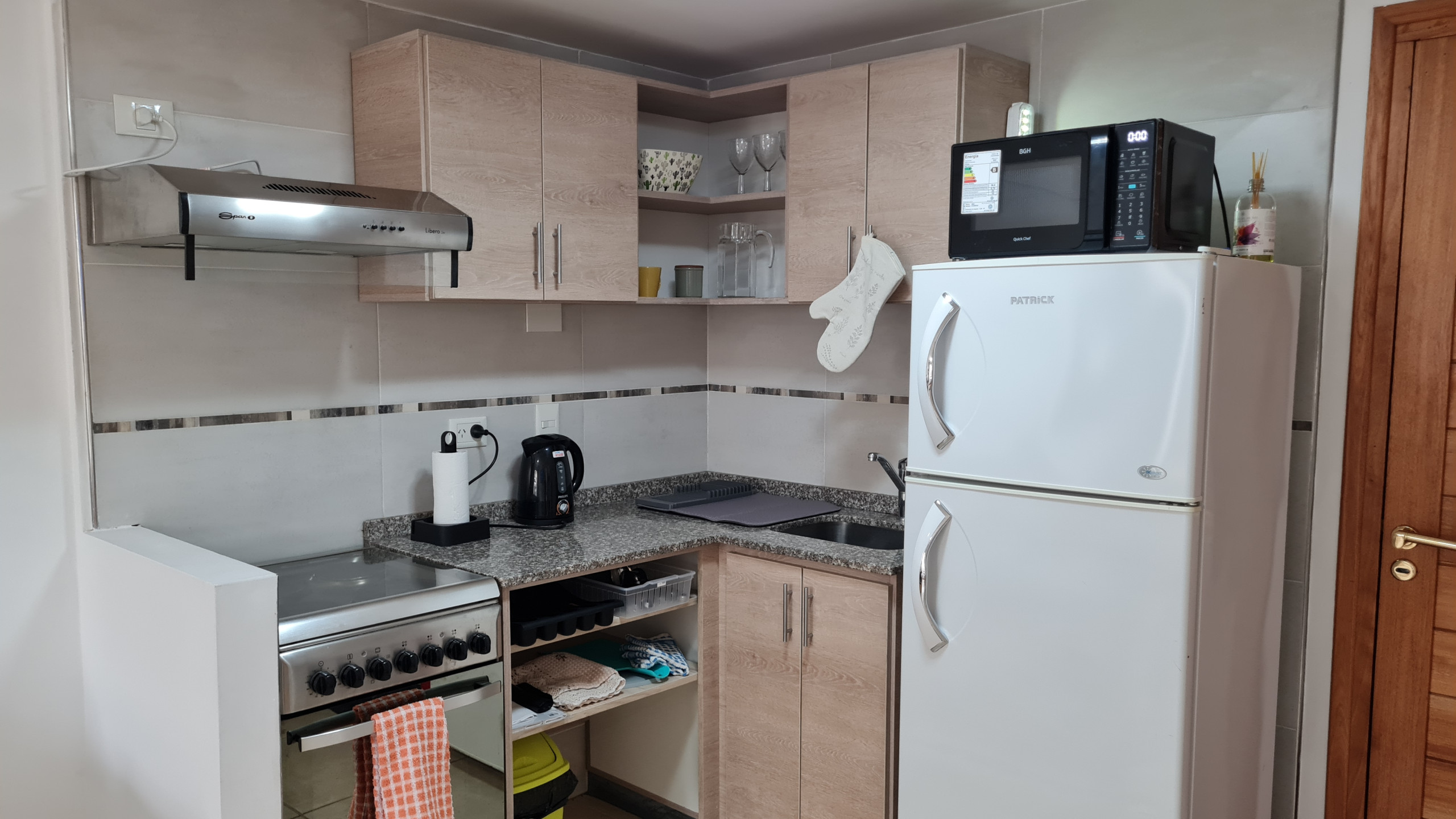 The American kitchen is fully equipped with modern appliances such as refrigerator, oven, microwave, coffee maker, toaster, and kettle. You will find all the necessary utensils to prepare delicious meals and enjoy gastronomic moments.