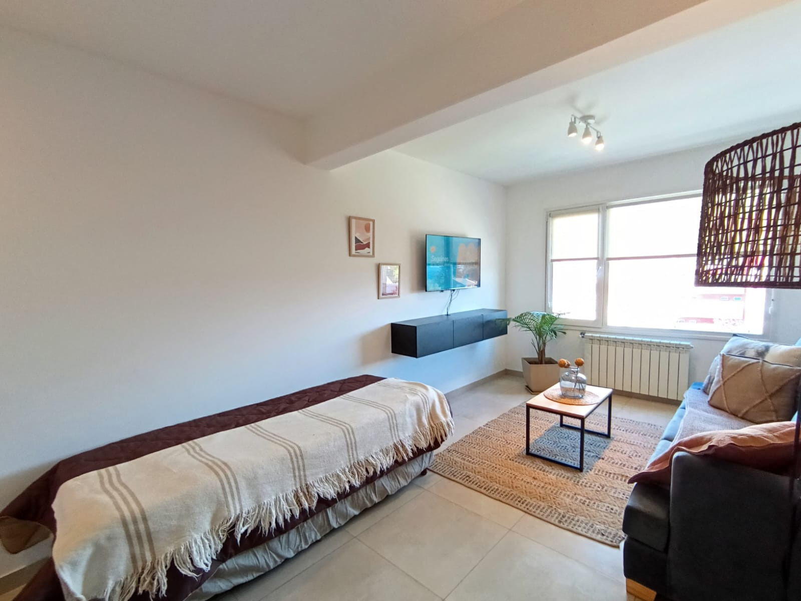 The living room offers a comfortable sofa and an additional twin bed, ideal for a third person. The kitchen is independent and fully equipped. Additionally, the apartment has parking.