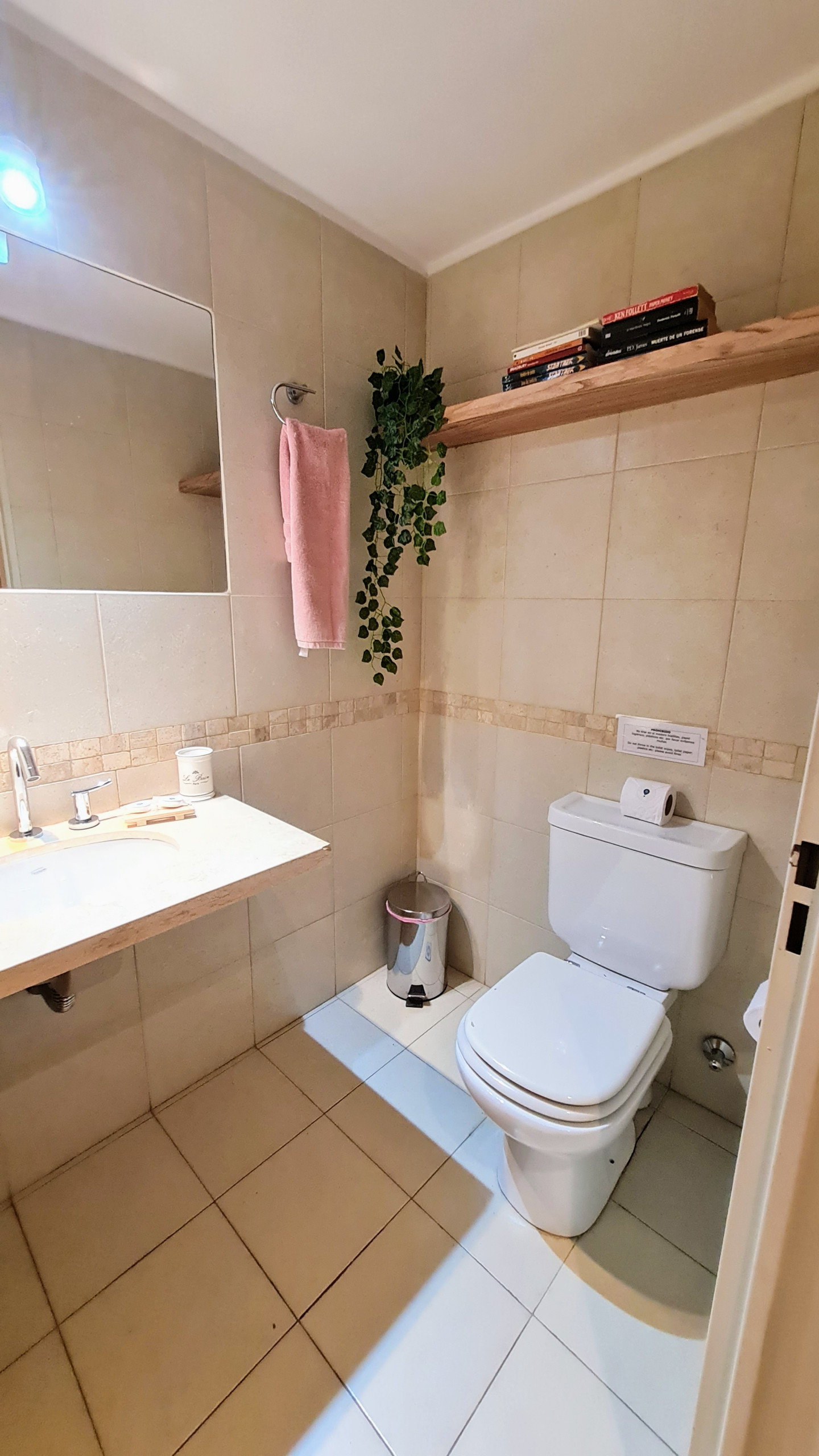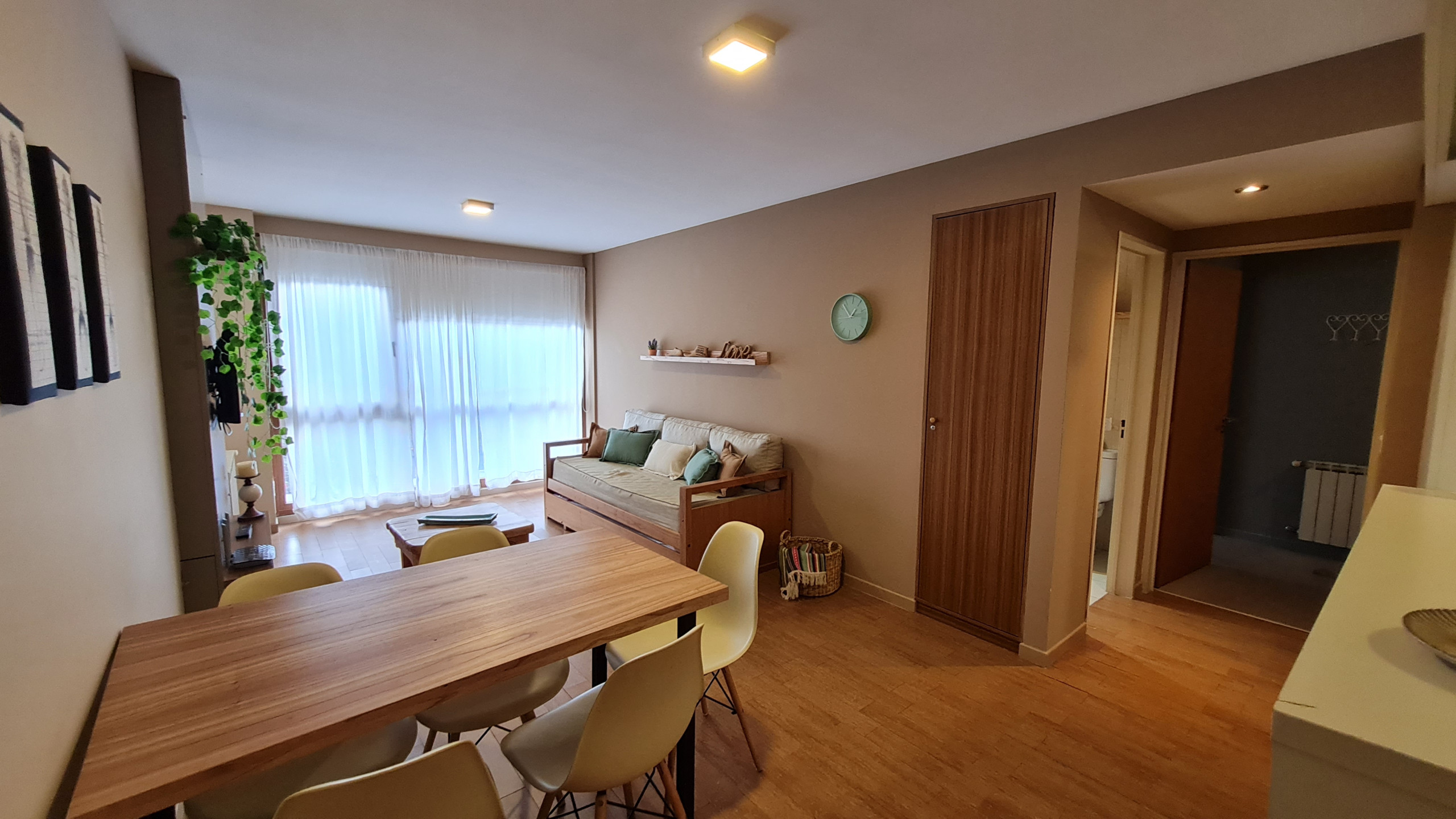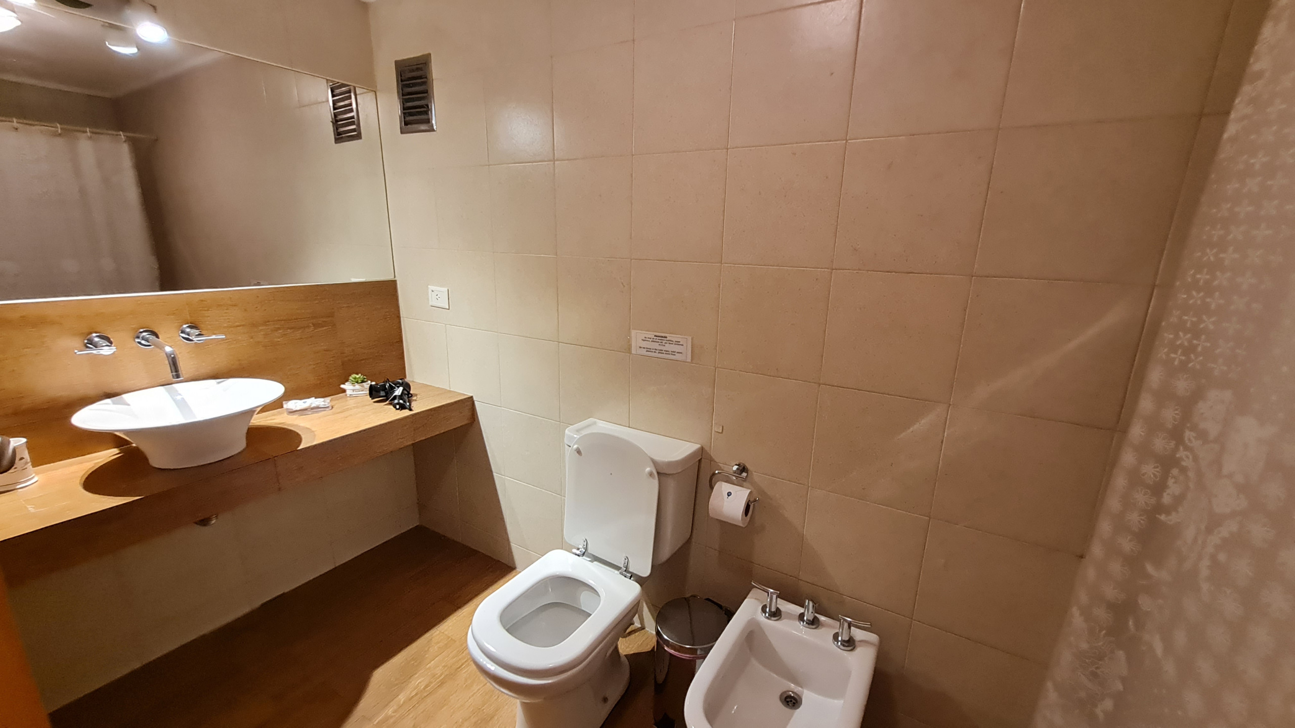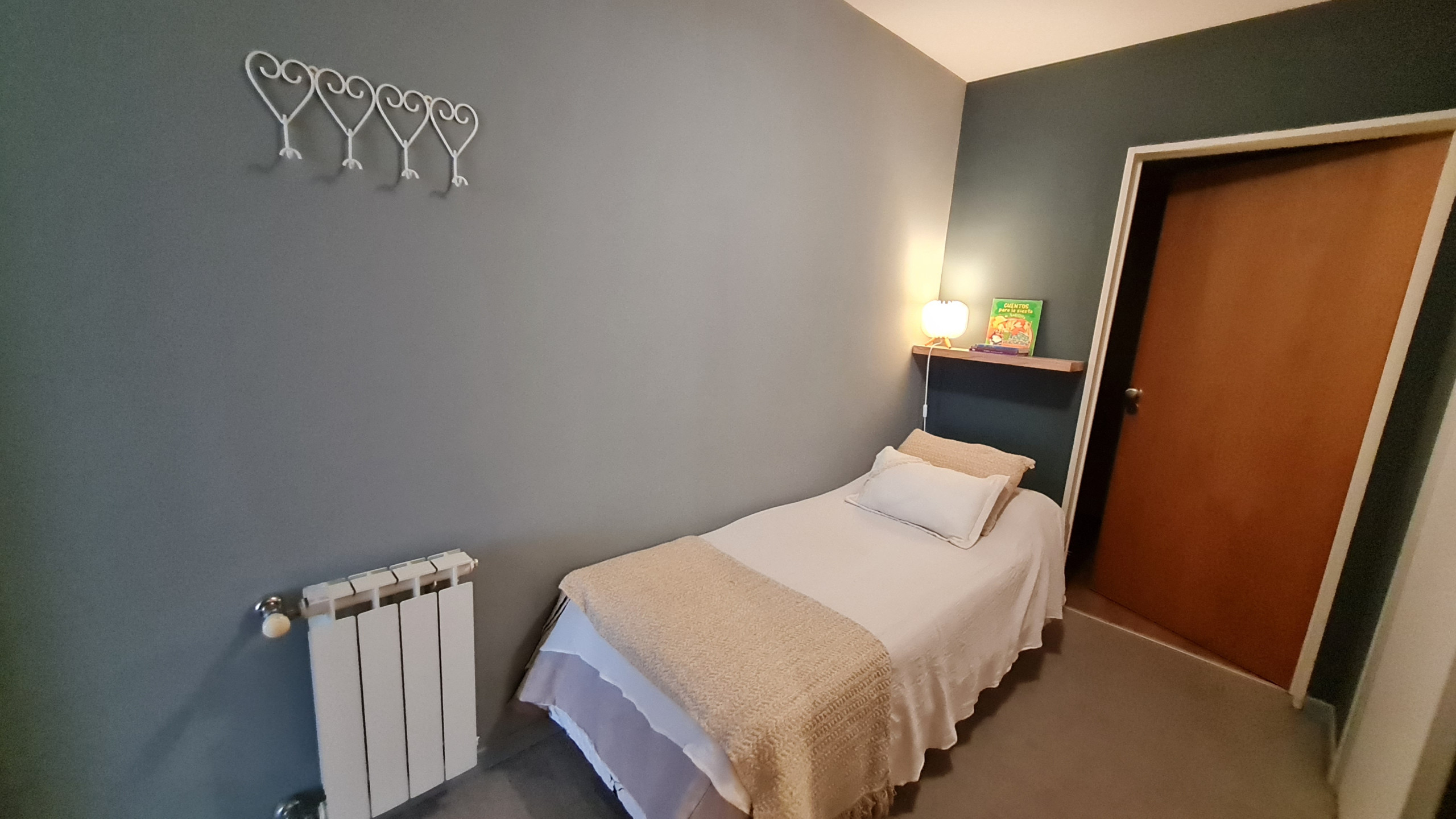 The apartment features two very spacious rooms, tastefully decorated to offer our guests a comfortable and pleasant stay. It provides everything necessary to enjoy a great time in Bariloche. Fully furnished and equipped; it includes a bedroom with a double bed and a hallway between the bedroom and the bathroom, spacious enough to accommodate a twin bed. In the living room, there's a daybed with a pull-out trundle bed. Additionally, there are two bathrooms, a fully equipped kitchen with microwave, toaster, electric kettle, gas stove, and all necessary utensils for cooking. The apartment is heated with radiators and has Wifi service.