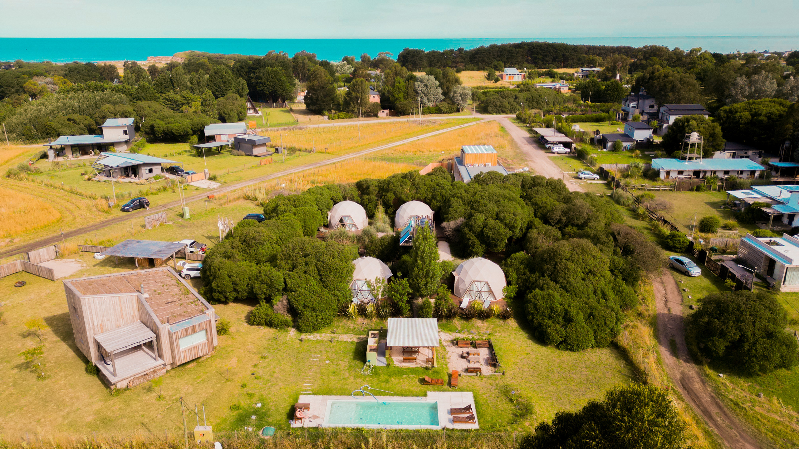 Aiken Chapa is a relaxed space that also invites you to live in community with some common amenities such as a campfire, pool, grill, and a communal table area under the shade. You will be very close to the most beautiful beach in Chapadmalal: Cruz del Sur and Redondo, allowing you to walk from the dome to the beach all year round.