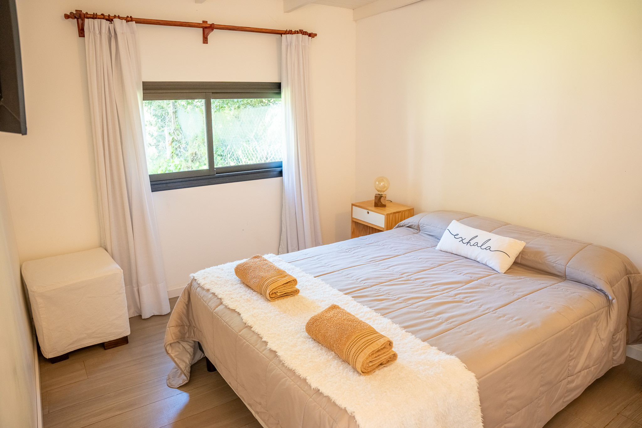 Each house has a living-dining room with an integrated kitchen. In the same space, there is a sailor-style sofa bed with very comfortable mattresses and blackout curtains. A main bathroom and a bedroom, all brand new. Outside, you will have a churrasco-style grill, a dining table with an umbrella, and an outdoor living area in the front of the house to enjoy all day. Additionally, with an open space to park your car, we couldn't ask for more!