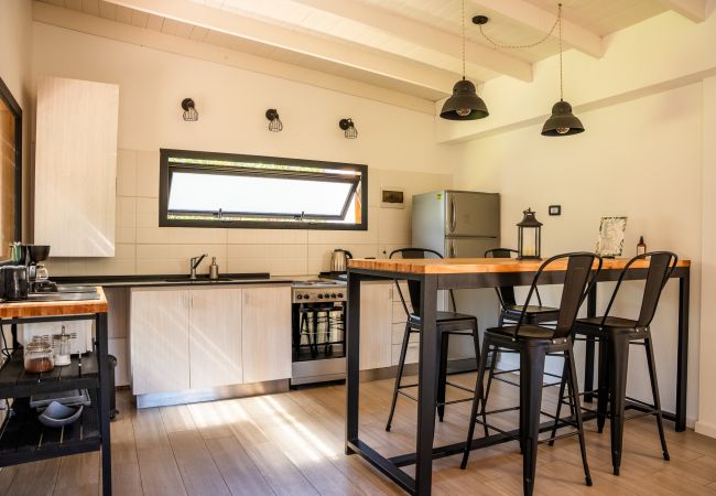 Casa moderna y con hermoso diseño. Amplios espacios para disfrutar y hermoso frente con césped. Todas las comodidades para cocinar dentro, vajilla, elementos, condimentos: inlcuso Parrilla y plancha disponibles para cocinar bajo techo afuera. Bienvenida de lujo con regalos de cortesía. Ducha con presión de agua excelente. Aire acondicionado, y buena ventilación. Casa muy luminosa. Lista también para el invierno. Ingreso cómodo para el auto.