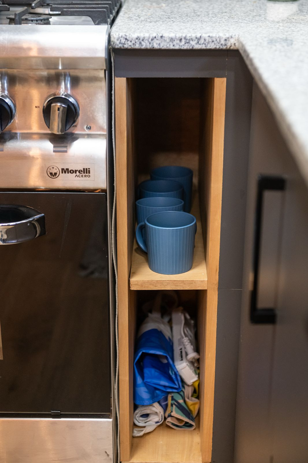 The fully equipped American-style kitchen has modern appliances such as a refrigerator, oven, microwave, and coffee maker.