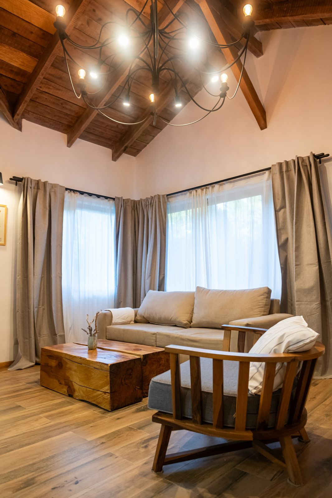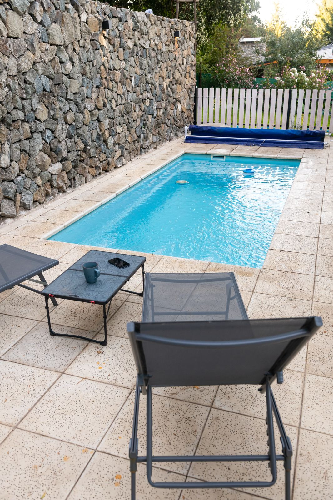 Casa Los Pinos is located just 10 minutes from the center by car, with a capacity for 5 people. The property has 2 bedrooms, one of them with a bunk bed and a pull-out bed, a full bathroom, and a toilet. The living-dining room with kitchen includes a sofa, a coffee table, and a table with 6 chairs.